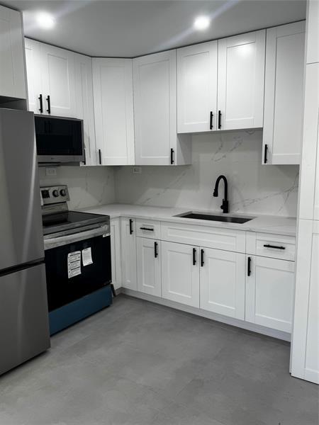 BARND NEW AND BEAUTIFULLY RENOVATED home ready for rent! This 3 bedroom 1 bathroom is the front unit of a duplex w/ approx 1000 square feet of living space. Fully updated with a brand new roof, AC, hurricane impact windows, ceramic 24x24 light gray tiles, brand new bathroom with walk in shower, built in closets, new white shaker kitchen cabinets with granite counters and top of the line LG appliances (including french door fridge, microwave, electric range, washer and dryer - ALL STAINLESS STEEL) This property is the perfect rental in a great neighborhood, minutes away from the beach and 5 min North of Atlantic Ave with tons of shops and stores. One year lease only, NO SMOKING. Rent will include water, trash and a monhtly cleaning person. PLEASE CLICK ON LINK BELOW TO WATCH THE VIDEO!