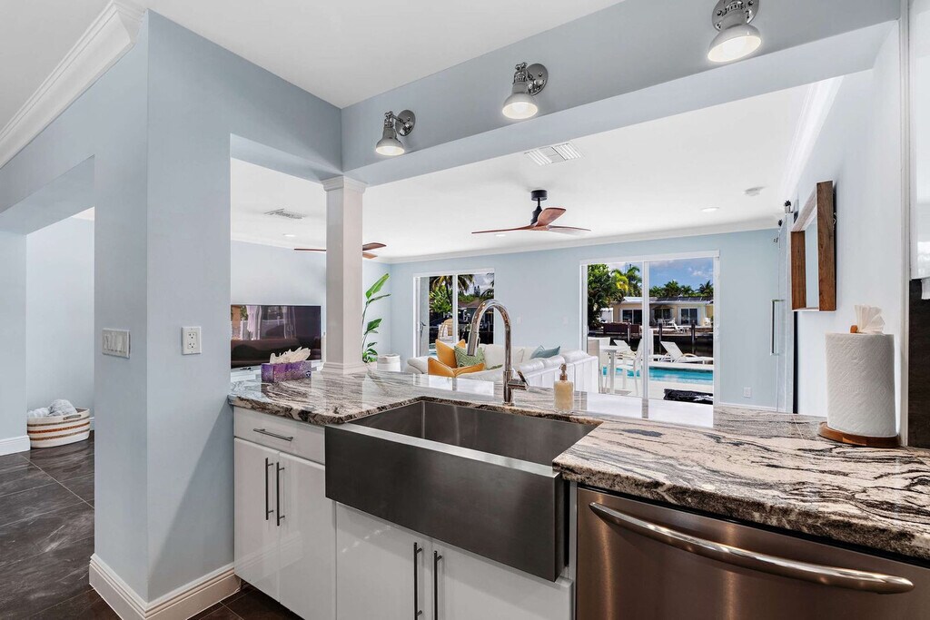 The advertised rate of $6,824/month is the lowest available price, based on a 1 month(s) stay with a move-in date of April 18, 2026. Rates vary depending on the duration of stay, season, and other parameters. For exact pricing and additional pricing components, please visit our website and enter your desired move-in and move-out dates. The rate is applicable when billed upfront; it can be higher if billed in multiple payments. Feel at home in this 3-bedroom, 2-bathroom home in a prime Oakland Park, FL location. This home sleeps up to 8 guests. This bright and modern home features a fully stocked kitchen with high-end stainless appliances and a Keurig coffee maker, an open-concept living area with a smart TV and indoor fireplace, and a dining area. Enjoy the private pool, outdoor patio with dining, BBQ grill, hammock, pool table, ping pong table, washer and dryer, and beach essentials. Up to 2 dogs are allowed for a fee of $125 per stay. Located in a prime waterfront spot, you’re just minutes from local dining, attractions, and everything Fort Lauderdale has to offer. Nearby attractions include Xtreme Action Park (~1.5 miles), Jaco Pastorius Park (~3.1 miles), Secret Woods Nature Center (~6.5 miles), Bayview Park (~4.2 miles), and Mills Pond Park (~5.0 miles). Restaurants in the area include Jet Runway Café (~1.2 miles), Escargot Bistro (~3.0 miles), Bulegreen Café Yard (~2.8 miles), El Guanaco Taqueria Y Antojitos (~3.4 miles), and Peter Pan Diner (~3.2 miles). Renting a car is a convenient option to explore the area, and rideshare services like Uber and Lyft are readily available. Check-in is at 4pm and check-out is at 10am. The in-ground spa is out of order. No cats are allowed. Guests must be 21 years or older to book this property. No parties are allowed—violations may result in immediate termination of the stay. Street parking is not allowed. An exterior camera is installed solely to monitor the cleaning team for quality and security purposes. We kindly ask that your dog is crate trained and that you pick up after your dog. Includes a dedicated workspace. [SI]