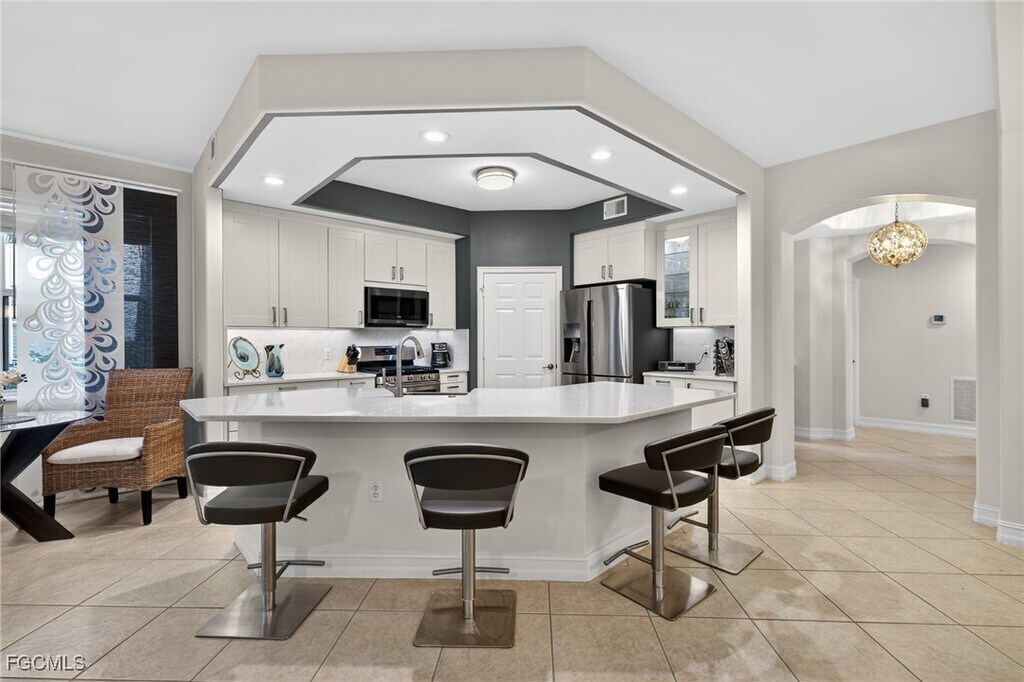 BEST DEAL THIS WINTER IN NAPLES,FL - 15% OFF 3 MO STAY at this turnkey furnished 2/2/1 ground floor condo in Tarpon Bay,a tropical resort community. Guests' cancellation means WHOLE SEASON is open (12/21/25-4/15/26) w SPECIAL RATES FOR THIS SEASON or longer. (PLEASE SEE THE LINKS TO VIRTUAL TOURS & interactive floor plan). Modern,pristine & updated 1800 sq ft under air 2 bedroom 2 full baths (both multi-function showers) Chef's kitchen (natural gas) w top of line stainless steel appliances,quartz counters,soft close drawers,full depth pull out drawers,pots/pans/spices,full pantry. Living room has leather contemporary furnishings,cable tv,WiFi. Dining table inside for 6,outside for 6,cozy breakfast nook for 2. From great room & primary suite 3 sets of sliders pocket to the side so open to screened lanai expanding living space & adding lush view of preserve. Primary owner's suite has King bed,OEKO-TEX linens,tv,large en suite bath,dual sinks,enclosed WC. Split floor plan has 2nd bedroom on opposite side of condo w Queen bed,quality linens,tv. Quiet & private oasis in condo,amenities include infinity edge pool overlooking 15 acre lake w 3 fountains & gazebo over the water for sunsets,fishing,sand volleyball court,canoe & kayak put in,spa,lounging area,grills w tables outside,fitness center,business center,library,catering kitchen. Near clubhouse are Har Tru tennis courts,pickleball courts,bocce,walking trails,bike friendly paths & sidewalks. Tarpon Bay is located 14 minutes from the nearest beach,20 minutes from RSW airport,20 minutes from 5th Ave S. shopping,galleries,dining. (This is a 3 bed condo but owners lock off one bedroom & a walk in closet,1 bay of 2 car garage is yours.) SORRY NO PETS allowed per HOA rules,NO SMOKING allowed period. Security deposit fully refundable if no issues,tenant pays 11% FL short term rental tax,fob fee for gated entry,application fee to association & end of stay cleaning.