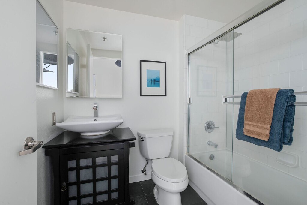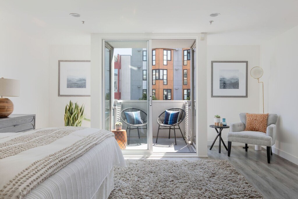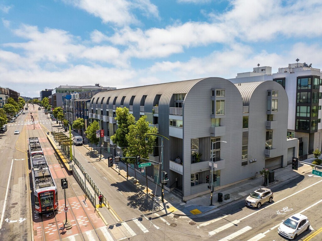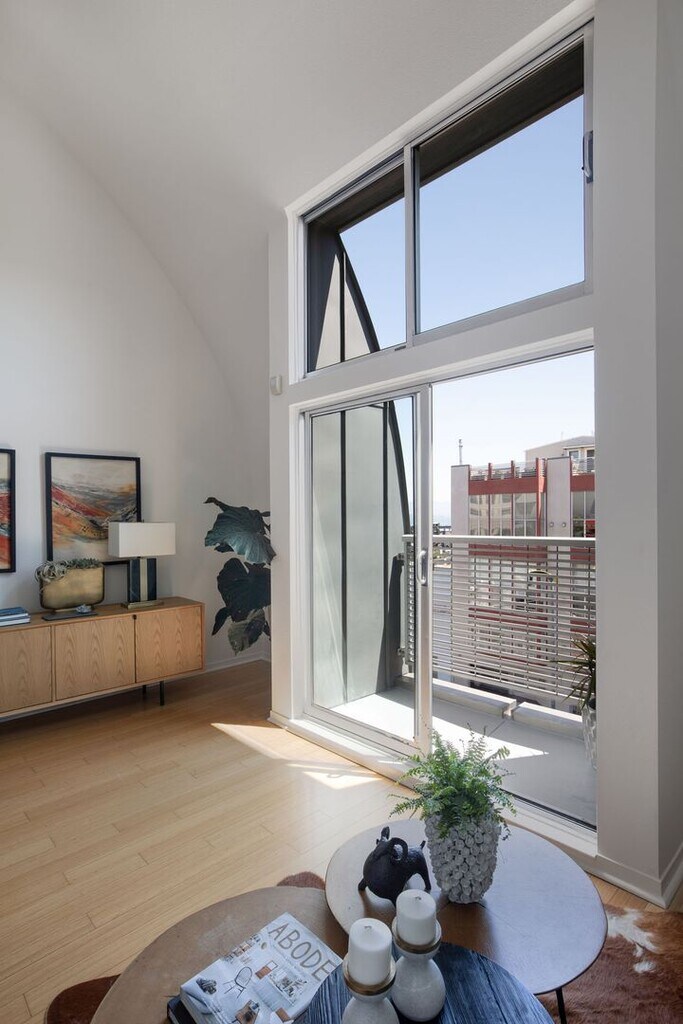 Step into this stunning tri-level two bedroom and two bath Condo in the sought-after Dogpatch neighborhood. Set within an iconic industrial-chic building designed by noted SF architect Stanley Saitowitz on the Central Waterfront, this unique unit offers a blend of contemporary design and urban sophistication. This condo features a dramatic spiral staircase, barrel ceilings, wood flooring and radiant heating. The private primary suite offers a relaxing retreat with ample closet space, a rain shower-over-tub bathroom, and sliding glass doors that lead to a private balcony. The open-concept kitchen and living area is both stylish and inviting, showcasing arched ceilings, automatic blinds, and a second balcony with picturesque views of the Bay. The sleek kitchen is designed for both functionality and style, featuring granite countertops, lacquered cabinetry, and stainless-steel appliances. On the third level, a bright and airy loft-style bedroom offers abundant natural light and flexible space perfect for a guest room, home office, or creative space. Additional highlights include a second full bathroom, in-unit washer and dryer, designated storage, and a secure garage parking space with direct interior access. This is a non-smoking unit, renter's insurance is required, and pets are negotiable. Water, garbage, radiant heating and internet covered by HOA. Key Features: -Architectural Charm: The condo boasts a striking spiral staircase, barrel ceilings, elegant wood flooring, and luxurious radiant heating. -Private Primary Suite: Unwind in your spacious primary bedroom suite featuring a rain shower-over-tub bathroom, ample closet storage, and sliding glass doors that lead to a private balcony. -Stylish Living Space: The open-concept kitchen and living room offer soaring arched ceilings, automatic blinds, and a second balcony with picturesque views of the Bay. -Modern Kitchen: Enjoy cooking in your sleek kitchen, complete with granite countertops, lacquered cabinetry, and high-end stainless-steel appliances. -Contemporary Loft: The bright and airy loft-style second bedroom on the third level offers plenty of natural light and flexible space. -Convenience: This home includes a second full bathroom, in-unit washer and dryer, designated storage, and a secure garage parking space with direct interior access. Nestled in the sunny Dogpatch area, a prime neighborhood with a Walk Score of 91 out of 100, making daily errands easy and convenient. Steps away from local favorites like Caffe Central and Neighbor Bakehouse, and within walking distance of all the trendy shops, cafes, and restaurants that this neighborhood has to offer, including The Ramp Restaurant, Mission Rock, and The Palm Court at RH San Francisco. Easy access to Highway 101 and 280, public transportation including the T-train on 3rd street, and Caltrain on King and 22nd Street. Nearby parks and green spaces include Mariposa Park, Agua Vista Park, Esprit Park, and Koret Quad. This unit is being shown by Gordon Property Management, please contact for more information or to set up an appointment to view this charming unit. Gordon Property Management CA DRE License #01780930 “This unit is a rental unit subject to the San Francisco Rent Ordinance, which limits evictions without just cause, and which states that any waiver by a tenant of their rights under the Rent Ordinance is void as contrary to public policy.”