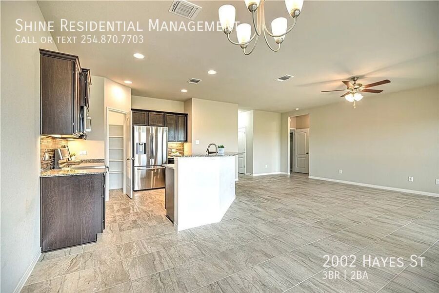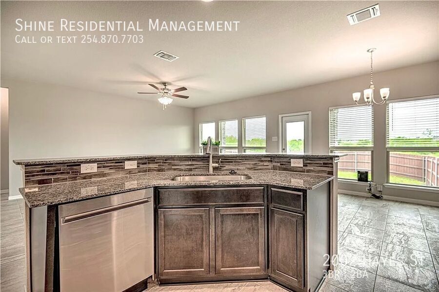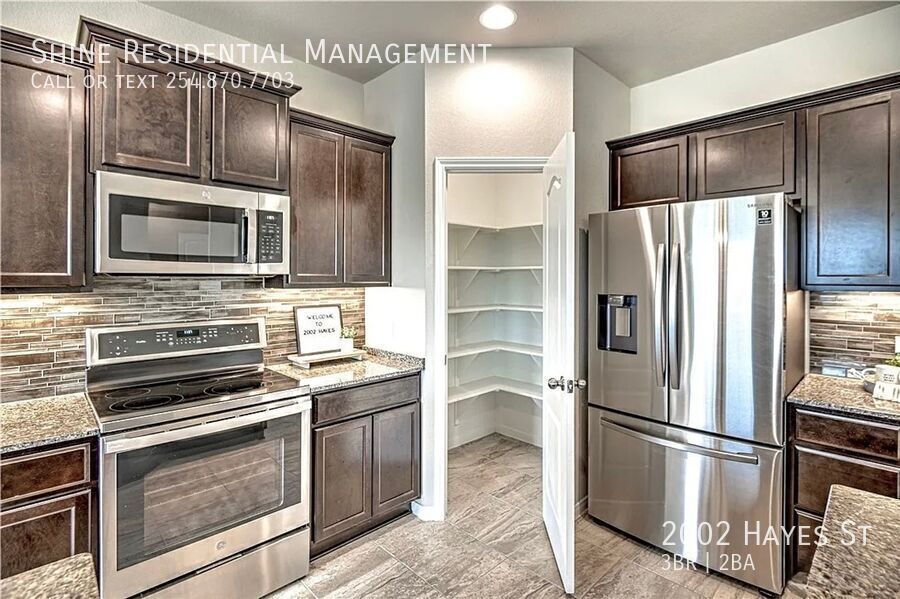 Welcome to New Community, a stunning residence located in the heart of Temple, TX. This home boasts three spacious bedrooms and two full bathrooms, offering ample space for comfortable living. The kitchen is a chef's dream, equipped with a pantry, granite countertops, a granite breakfast bar with a kitchen sink, a stainless microwave vent-hood, a stainless glass top oven/range, and a stainless dishwasher. The pull-down kitchen sink faucet adds a touch of modern convenience. The living area features tile and carpet flooring, recessed lights, and tilt and turn sash windows adorned with white faux wood blinds, creating a bright and inviting atmosphere. The master suite is a private retreat, complete with large closets, double vanity sinks, a large glass-enclosed shower with dual shower heads. Additional amenities include a garbage disposal, ceiling fans, a covered back patio, a two-car garage with an opener, and a stained privacy fence. The property is beautifully landscaped with Bermuda grass. A stainless side-by-side refrigerator with water and ice in the door completes this home's high-end features. Experience the perfect blend of luxury and comfort at New Community. 2 Car Garage Parking With Opener Bermuda Grass Celing Fans Covered Back Patio Double Vanity Sinks In Master Bath Duel Shower Heads In Master Shower Granite Breakfast Bar With Kitchen Sink Granite Counter Tops Large Closets In Master Bedroom Large Glass Enclosed Shower In Master Bath Pull Down Kitchen Sink Faucet Recessed Lights Stained Privacy Fence Stainless Diswasher Stainless Glass Top Oven/Range Stainless Microwave Venthood Stainless Sid By Side Refrigerator With Water And Ice In Door Tile/Carpet Flooring Tilt And Turn Sash Windows White Faux Wood Window Blinds