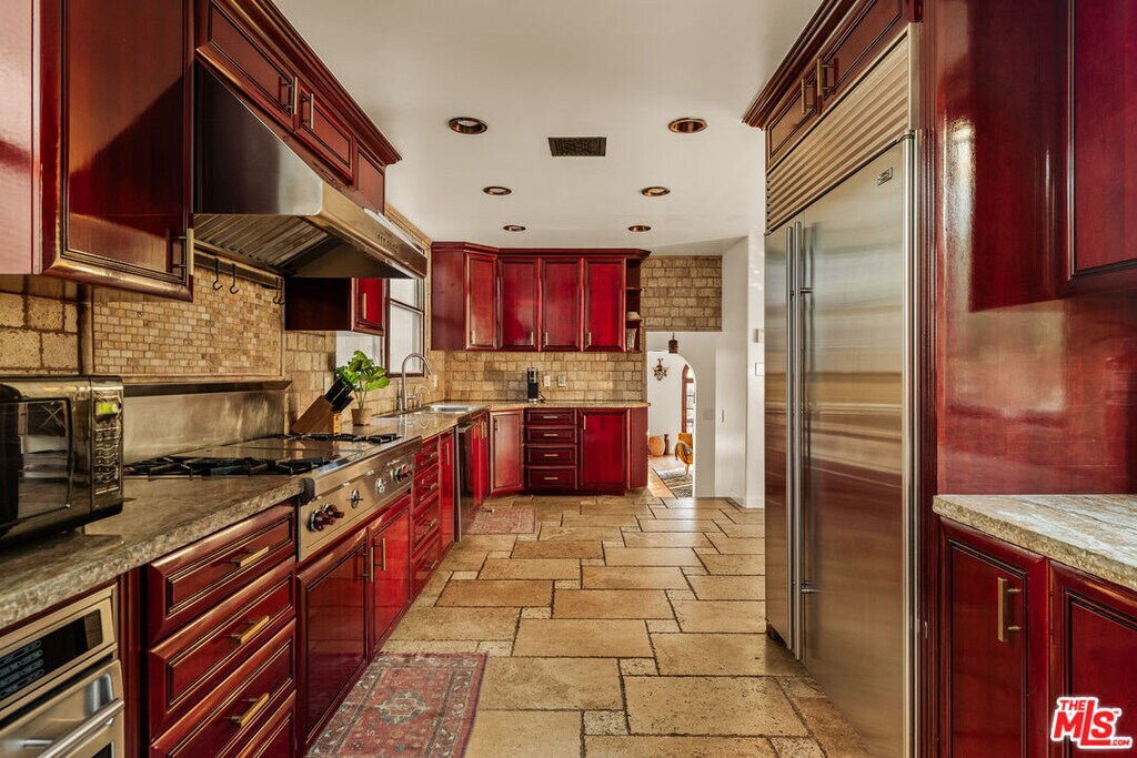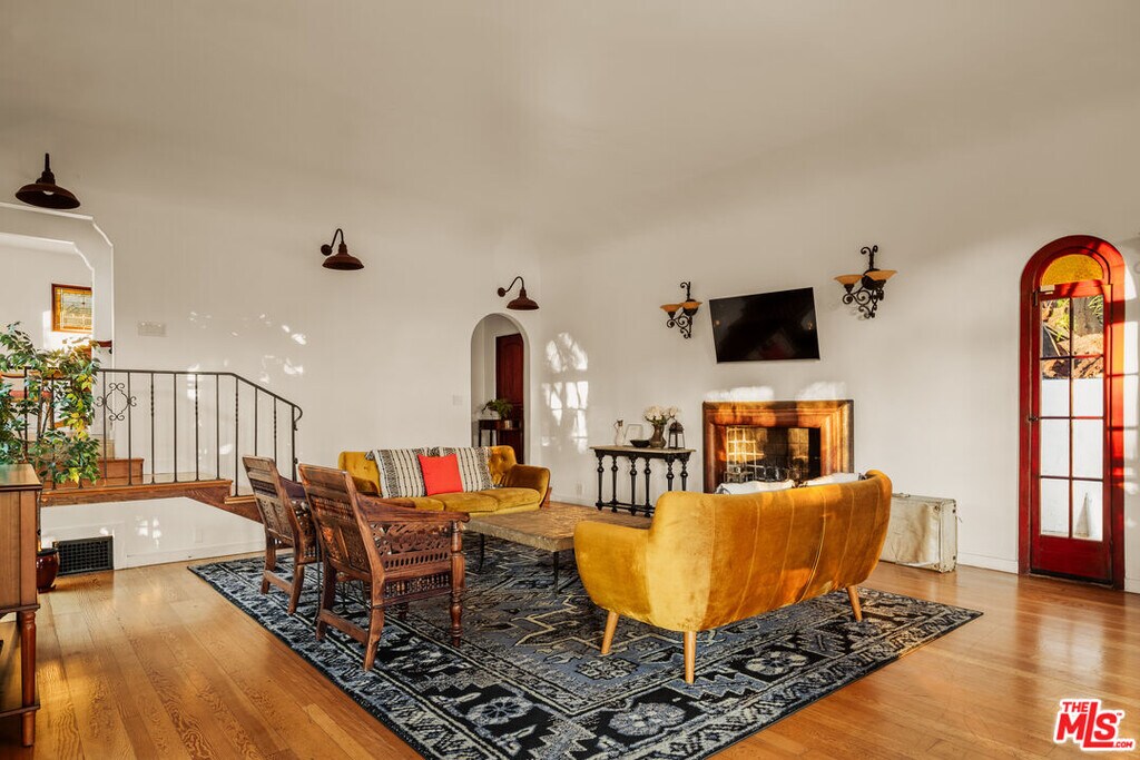 Perched in the heart of Whitley Heights, this beautifully preserved, fully furnished, Spanish Revival estate blends timeless 1920s charm with modern sophistication. Enjoy sweeping canyon and city views from nearly every room - from sunrise to sunset. The light-filled main residence offers three bedrooms and three bathrooms, highlighted by a dramatic living room with soaring arched windows and a cozy sunroom featuring exposed wood-beam ceilings. French doors open to a spacious deck, perfect for outdoor dining and entertaining under the stars. Rich in character, the home showcases exquisite original details, including wrought ironwork, stained glass accents, colorful Spanish tiles, and handcrafted wood built-ins. The gourmet kitchen has been updated with high-end stainless steel appliances, including a Wolf range, and offers extensive cabinetry. A detached guest house mirrors the main home's vintage charm and provides flexible use - ideal as a guest suite or private office. The property also features multiple outdoor spaces for al fresco living, including manicured front and back yards, two patios, a view deck, and a balcony. Additional amenities include a one-car garage and on-site parking for two more vehicles. A private stairway offers direct access to Hollywood & Highland, the Hollywood Bowl, and other iconic attractions. A rare opportunity to experience a piece of Hollywood history, with unmatched views and exceptional indoor-outdoor living. MLS# 26635951