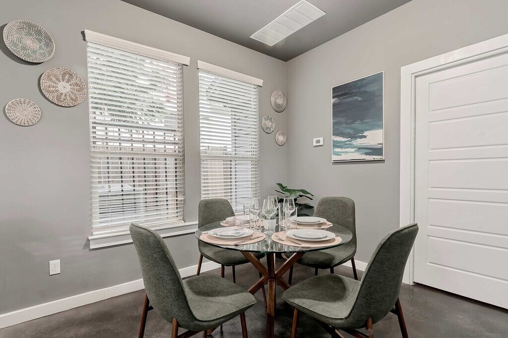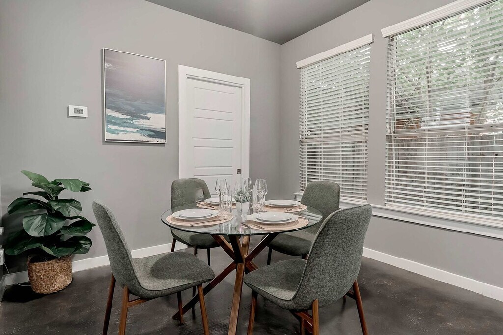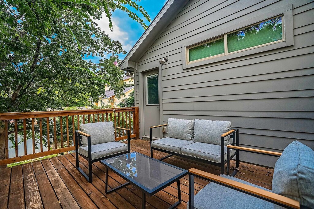 Feel at home in this spacious and stylish 6-bedroom, 3.5-bathroom home in Austin, designed for groups, families, and friends. This home offers plenty of space to relax, laugh, and make memories together. The home features bright, open living spaces filled with natural light, a fully stocked chef’s kitchen, and cozy dining areas. Each bedroom is thoughtfully designed with plush bedding and chic décor. The chef's kitchen is fully equipped with high-end appliances, ample cabinetry, a large island with high seating, and a drip coffee maker. Enjoy the hot tub, grill, deck with amazing views, and patio. Up to 2 dogs are allowed for $125 per stay, no cats please. Guests can park 2 vehicles in the driveway and 1 vehicle in the garage. Located in Rosewood, one of East Austin’s most vibrant and culturally rich neighborhoods, this home is just minutes from Downtown Austin, providing quick access to iconic spots and buzzing nightlife. The surrounding area is packed with some of the city’s most beloved restaurants, coffee shops, breweries, and taco joints. Rosewood Neighborhood Park is 0.3 miles away, Este is 0.4 miles away, the Texas State Capitol is 2 miles away, Lady Bird Lake & Trail is 2.5 miles away, the East Austin Mural & Street Art District is 1 mile away, and the 6th Street Live Music District is 2 miles away. No parties are allowed, and violations may result in immediate termination of the stay. Guests must be 21 years or older to book this property. Check-in is at 4pm and check-out is at 10am. [SI]