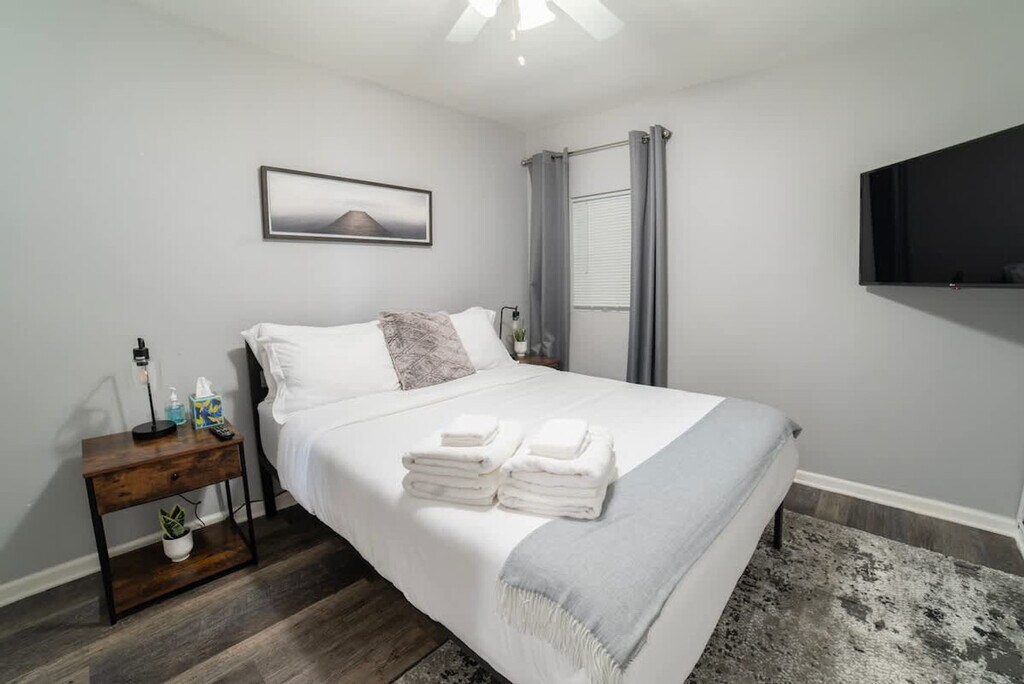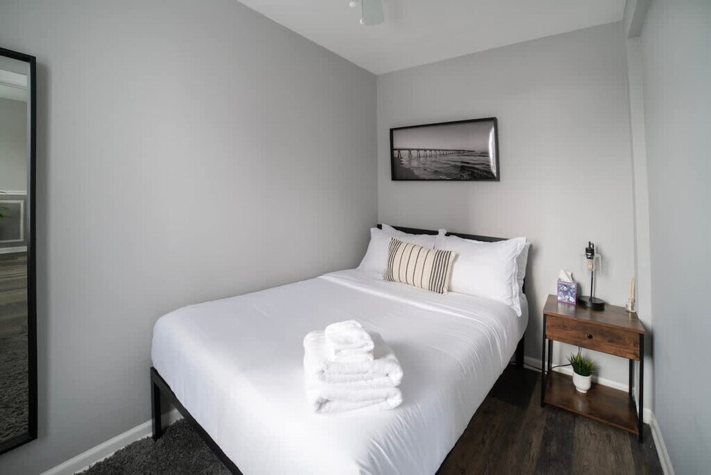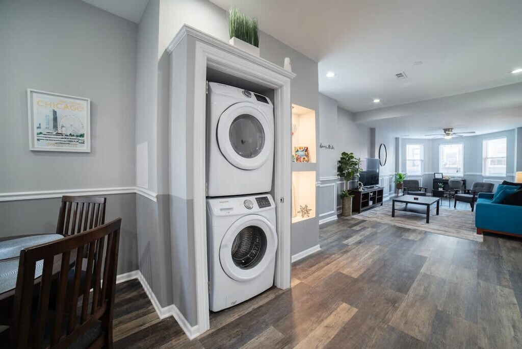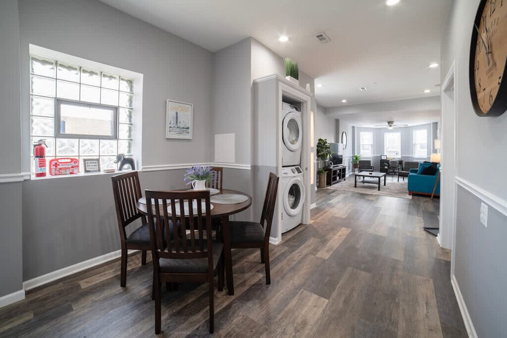 Discover your home away from home in this 3-bedroom apartment in the heart of Pilsen, Chicago. Feel at home in this modern, playful apartment. This apartment is perfect for travelers seeking comfort and culture. It features a fully equipped kitchen with stainless steel appliances, a bright living room with a 50" Smart TV, and an in-unit washer and dryer. Enjoy modern comforts like central AC and heating, along with fast Wi-Fi. Enjoy the convenience of two dedicated parking spaces next to the building. Located in Chicago’s vibrant Pilsen neighborhood, this apartment is known for its colorful street art, amazing food, and creative energy. It's just 3 minutes from Carnitas La Michoacana and other authentic local spots. The Damen Pink Line Station is steps away, offering a 15-minute ride to downtown. You'll be surrounded by galleries, local cafés, and unique dining, making it great for creatives, foodies, digital nomads, and families seeking real Chicago culture. The Pink Line "Damen" station is a 2-minute walk, and the area is great for walking. Uber, Lyft, and bike share stations are also nearby, and public transit easily connects you to all of Chicago. Quiet hours are between 10:00 p.m. and 8:00 a.m. No parties or events are allowed, and violations will incur a $1,000 fine. Smoking inside the apartment is prohibited, with a $500 fine for violations. Tampering with noise monitors or cameras is also prohibited and will result in a $500 fine. Please be respectful of neighbors and follow our quiet hours. No additional guests are allowed at the home who were not on the reservation. Guests are liable for any damage to the property and should report any damages noticed at check-in. Check-in is after 4:00 p.m., and check-out is by 11:00 a.m. May include exterior cameras. No fireworks, firearms, or illegal activity. [SI]