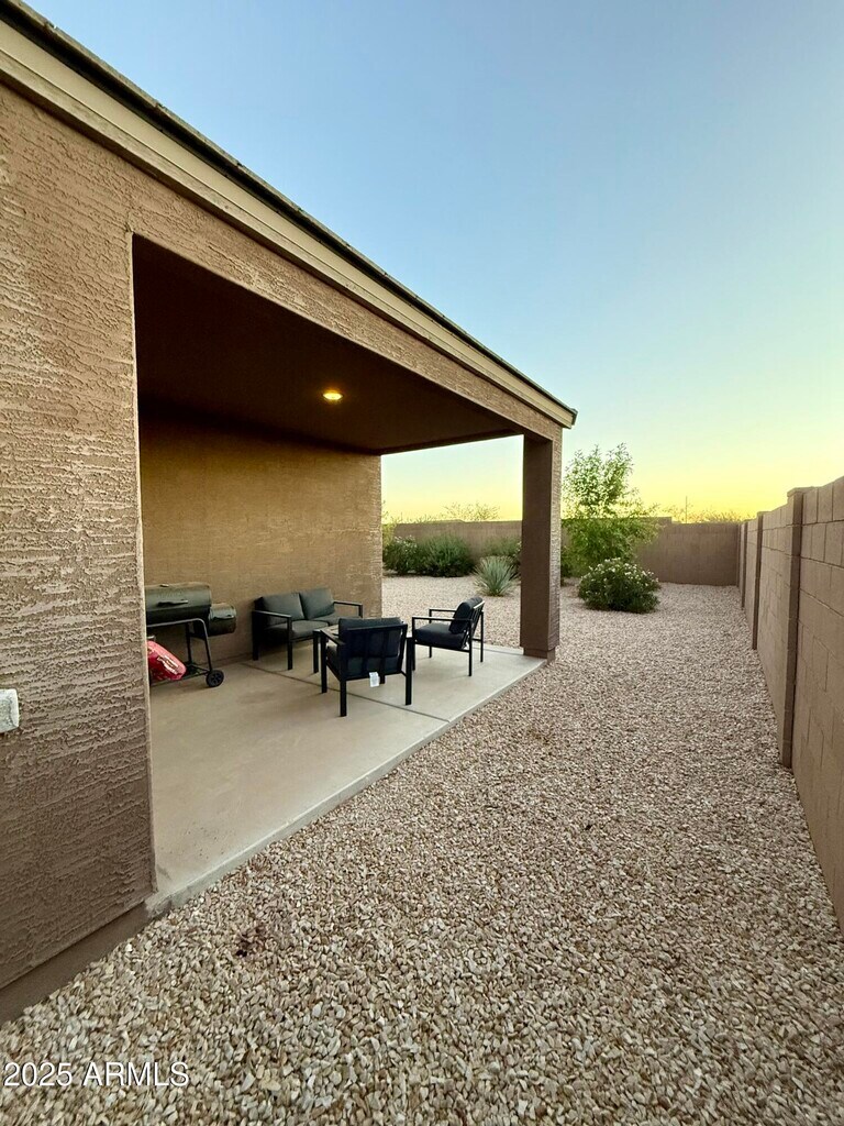 Spacious 4-bedroom,3-bath home with flex room in the Homestead community of Maricopa. Floor plan features two bedrooms with private en-suite bathrooms,ideal for multi-generational living,roommates,or guests. The open kitchen offers ample cabinet space,breakfast bar seating,and flows into the dining and living areas filled with natural light. The primary suite includes dual vanities and a walk-in closet,while the flex room provides space for an office,playroom,or workout area. Tile in high-traffic areas,neutral finishes,and low-maintenance backyard with covered patio make this home move-in ready. Conveniently located near schools,shopping,dining,and SR-347 for an easy commute. Disclosure: Owner/Agent.