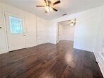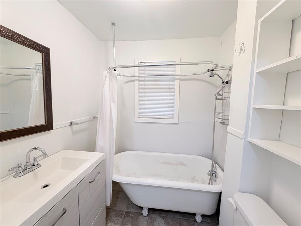 Welcome to this inviting 3-bedroom, 2-bath home offering comfort, character, and versatility. A welcoming front porch leads into the main living room, filled with natural light and charm. Continue through French doors to a secondary living area—perfect for a family room, home office, or playroom. Beyond that, a spacious dining area offers flexibility as a multi-use space. The large, eat-in kitchen sits at the back of the home and features ample cabinet storage and space for a dining table—ideal for gatherings and everyday meals. The oversized primary suite includes an ensuite bath with a standing shower and generous walk-in closet. The two secondary bedrooms share a Jack-and-Jill bathroom with a classic clawfoot tub. Outside, you’ll find a 2-car garage and large driveway located behind the home, accessible via the alley with entry off Poquito Street—offering both convenience and privacy.