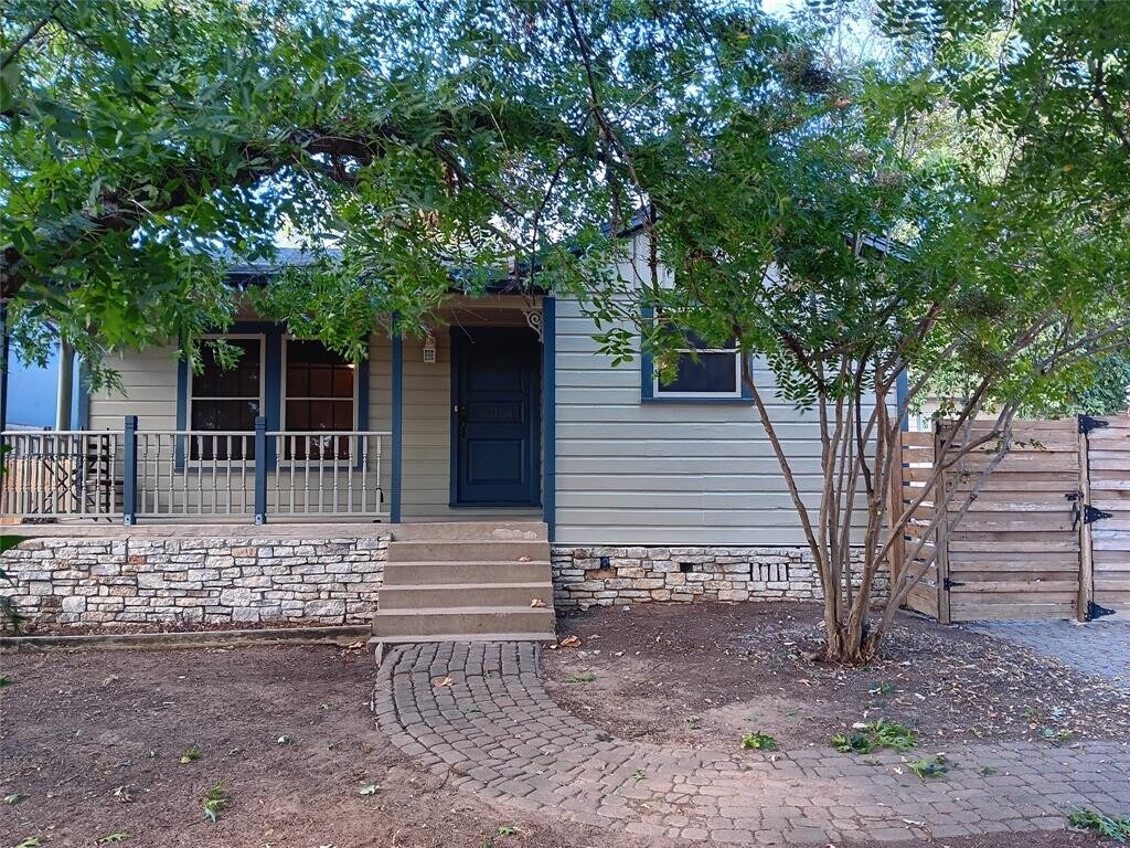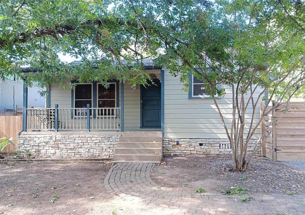 Classic postwar bungalow in a fantastic location in the Zilker neighborhood, just off South Lamar near Loro, Matt’s El Rancho, and the Broken Spoke. Recent HVAC, new gas range in kitchen, shiny hardwood floors. Tree shaded front yard, covered front porch, completely fenced private backyard, detached workshop in back. Pets welcome. MLS ID 8830435