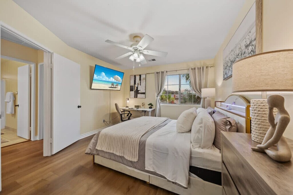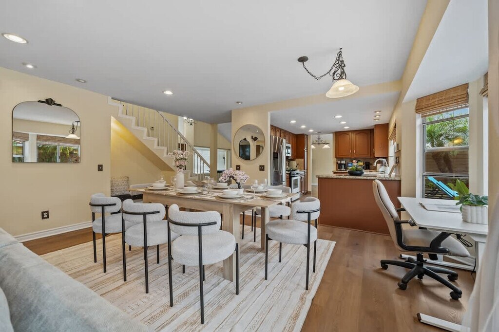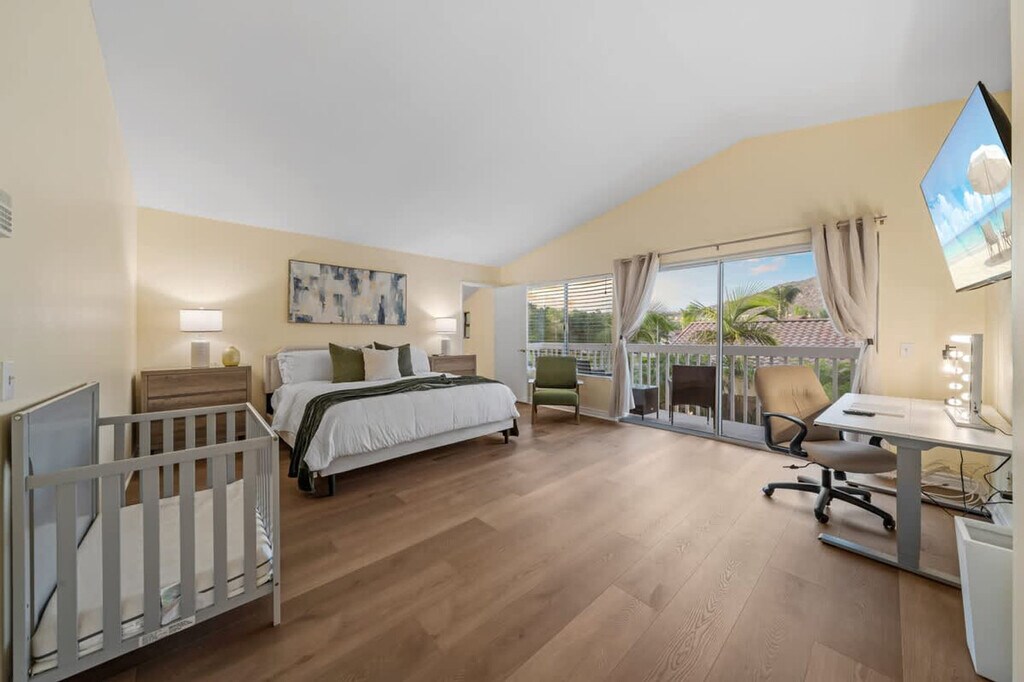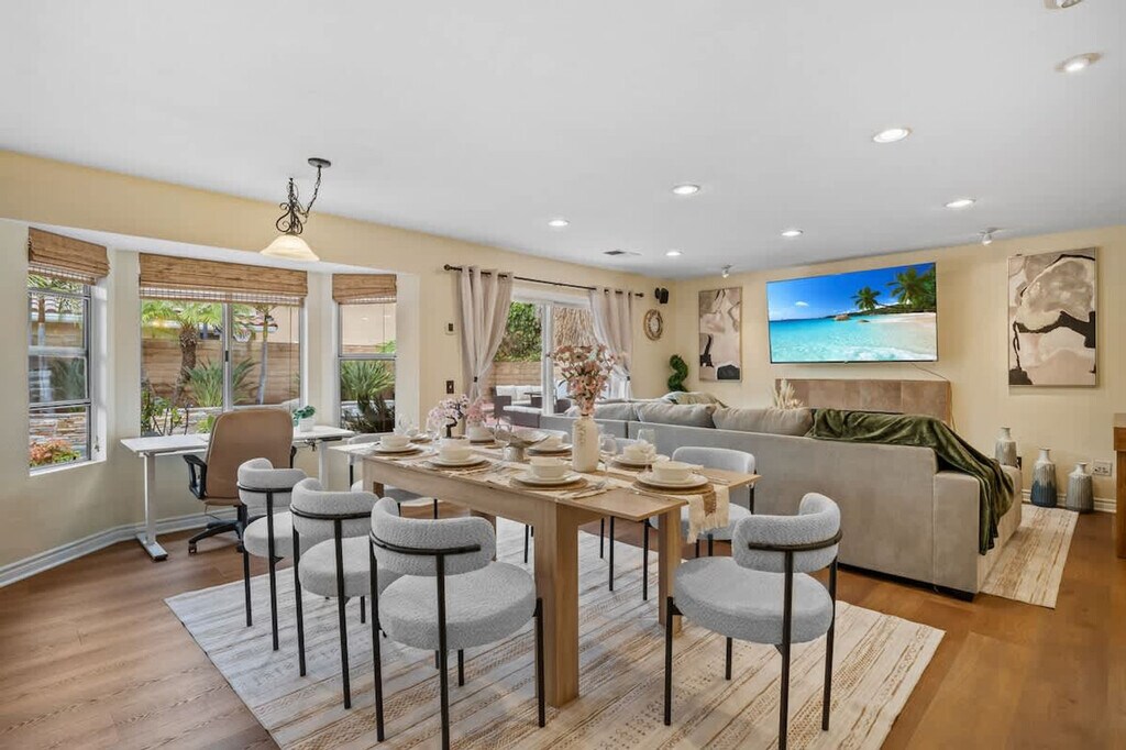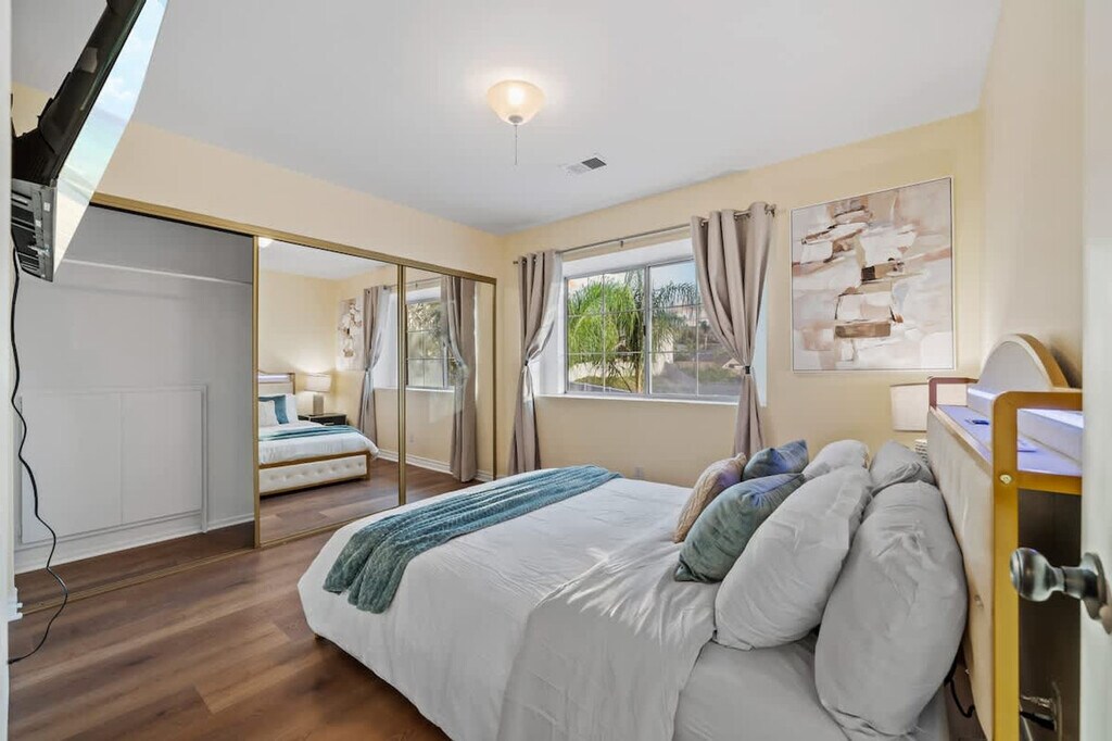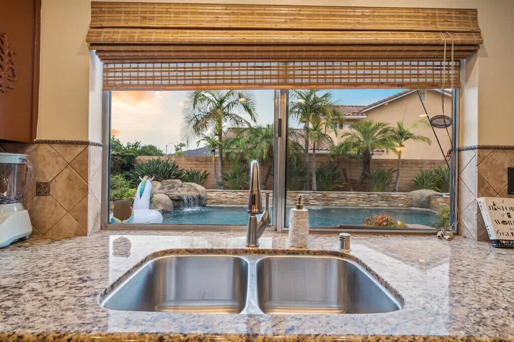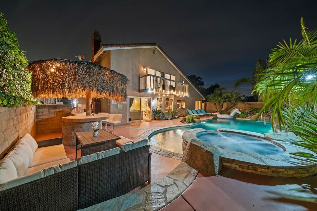The advertised rate of $7,094/month is the lowest available price, based on a 1 month(s) and 2 day(s) stay with a move-in date of February 25, 2026. Rates vary depending on the duration of stay, season, and other parameters. For exact pricing and additional pricing components, please visit our website and enter your desired move-in and move-out dates. The rate is applicable when billed upfront; it can be higher if billed in multiple payments. Feel at home in this family home in San Diego, El Cajon, located in a wealthy neighborhood. This home features 4 bedrooms, best suited for 8 adults, with one bedroom and bathroom on the ground floor with a walk-in shower. This centrally air-conditioned home features a living room with a 75-inch flat-screen smart TV and snug couches. The TVs are hooked up to cable with over 100 free local channels, plus Smart Roku for Netflix, YouTube, and Disney+, and a PS4 game console. The kitchen is equipped with modern appliances, including a coffee machine, and essentials like coffee, cooking oil, sugar, and salt. There are dining tables and chairs both inside and outside for at least 16 people. The 3.5 fully stocked bathrooms include 2 walk-in showers, 2 bathtubs, shampoo, body wash, a hairdryer, and fresh towels. Enjoy the convenience of the in-unit washer, dryer, and detergent. Enjoy the surrounding gated yard with a pool, hot tub, and grill. Secured garage and driveway parking are available for 5 cars or more. Pets are welcome. Located in Rancho San Diego, one of East County’s most sought-after communities, this home is nestled in the rolling hills east of downtown El Cajon. The neighborhood is known for its peaceful cul-de-sac streets, scenic mountain views, and family-friendly atmosphere. Enjoy beautiful hillside views, wide-open skies, and nearby hiking trails. Just minutes away, you’ll find shopping centers, grocery stores, coffee shops, and restaurants in the heart of Rancho San Diego. Downtown San Diego and the Gaslamp Quarter are approximately 20–25 minutes away, San Diego International Airport is approximately 25–30 minutes away, La Mesa Village is approximately 10–15 minutes away, Mission Valley/Fashion Valley Malls are approximately 20 minutes away, Balboa Park and San Diego Zoo are approximately 25 minutes away, Pacific Beach and Mission Beach are approximately 30–35 minutes away, Coronado Island is approximately 30 minutes away, and Julian Mountain Town is approximately 40 minutes away. Quiet hours are between 9 PM and 8 AM. Excessive noise may lead to neighbor complaints or visits from local authorities, and a $1,000 violation fee may apply. Only guests and pets counted on the reservation are allowed on the property. Each unauthorized guest or pet may incur a $100 per person/pet per day/night fee. Visitors are welcome with advance notice, subject to approval, and counted as half a guest toward the guest count. Smoking is allowed outside the home only, with windows and doors closed to prevent the smell from getting inside. Tampering or disconnecting security cameras, noise monitors, or other security devices will result in a $1000 fine. A minimum fee of $100 may be applied to key-related issues such as forgetting to return keys after checkout, lost keys, locking yourself out and requiring assistance, or key replacements. Fast 500 Mbps Wi-Fi is available. [SI]