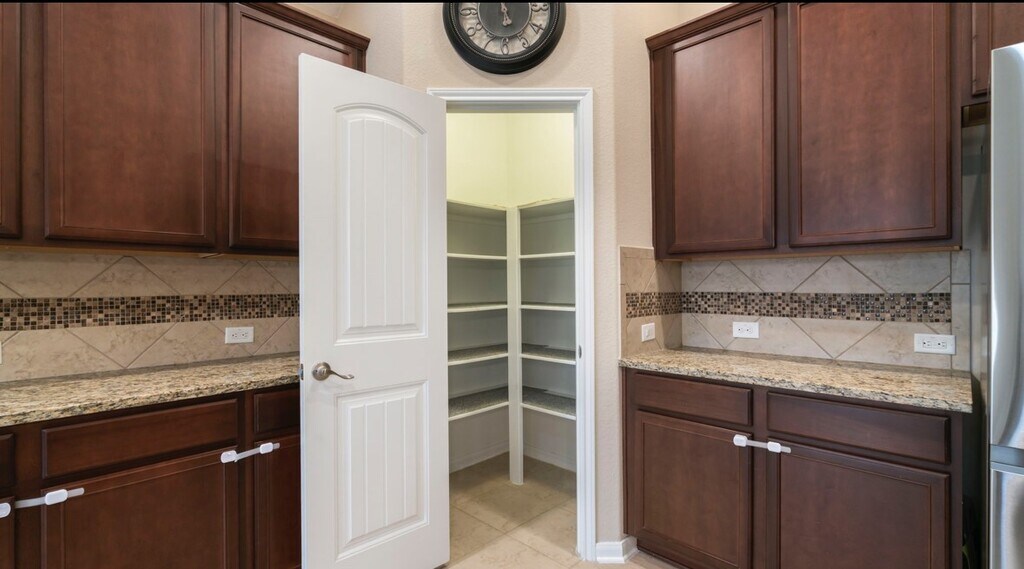 This beautiful single-story brick home with a 3-car tandem garage and epoxy flooring offers both style and functionality. A private office off the entry is perfect for working from home. The spacious family room,highlighted by a fireplace,flows seamlessly into the gourmet kitchen,featuring a walk-in pantry,stainless steel appliances,and a gas cooktop. A convenient half bath is located near the living area for guests. Upgraded hardwood floors add elegance throughout the home. The large primary suite includes a cozy bay window seating area and a luxurious oversized tile shower. The split floor plan offers two generously sized guest bedrooms that share a full bath,along with plenty of additional storage. Outside,you'll find an extended covered patio,a sprinkler system,and beautifully landscaped grounds on a corner lot. The community backs up to a greenbelt,with miles of scenic walking trails at the Clear Creek Trailhead. MLS# 63825157