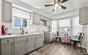 This cozy 3-bed, 1-bath bungalow in the lively O'Hair Square community blends classic charm with modern updates. Inside, original hardwood floors and abundant natural light create a warm, inviting atmosphere. The kitchen features new countertops, cabinets, and LVP flooring, with flexible options for gas or electric cooking. A smart Midea A/C unit keeps the home comfortable, even on hot days. With spacious bedrooms and thoughtful details throughout, this home offers the perfect mix of character and convenience.