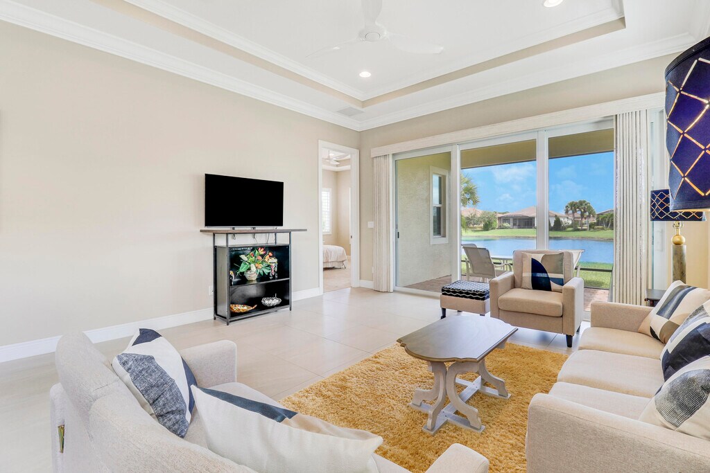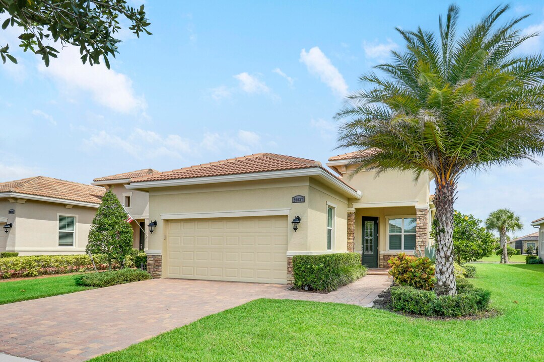 This 3BDRM/2BA/2CG home in PGA Village offers LAKESIDE LIVING at its best! If you're looking to enjoy a relaxed Florida lifestyle,this home checks all the boxes! Offered fully furnished/turnkey,this open great room plan includes neutral interior paint,tile flooring in living areas and IMPACT GLASS windows & doors for easy storm prep! Kitchen includes white cabinetry,quartz counters,SS appliances & breakfast nook. The spacious primary suite has walk-in closet,views over the lake,and a spa-like ensuite w/dual sinks,quartz counters & walk-in shower w/frameless glass door. Two more bedrooms plus guest bathroom are ready to accommodate extra family & guests! Enjoy your morning coffee or evening cocktail from the screened patio w/views overlooking the lake! Call today to view! This beautiful home is being offered for an annual 12-month lease. Utilities included in rent are basic cable,internet and lawn care. Tenant is responsible for the following utilities: electricity,water and must provide confirmation of rental insurance prior to move-in. Verano is an amenity rich community with indoor and outdoor pools,multiple fitness centers,sauna,tennis courts,a 27-court pickleball facility,walking paths,social clubhouse and more! This community truly has something for everyone! Call today! MLS ID B26019315