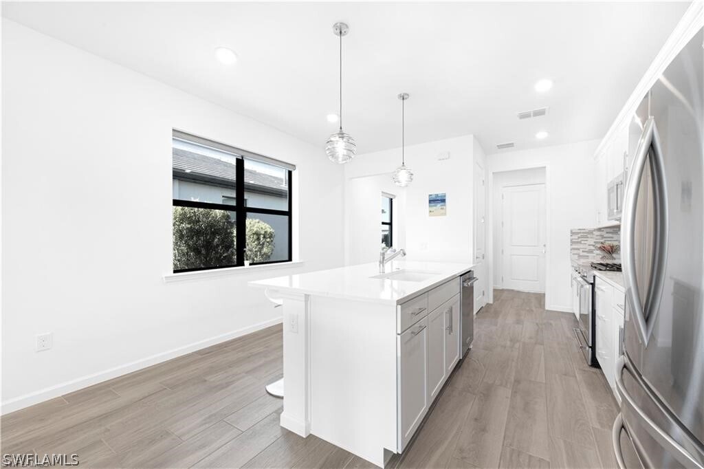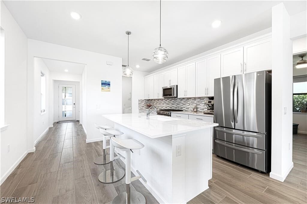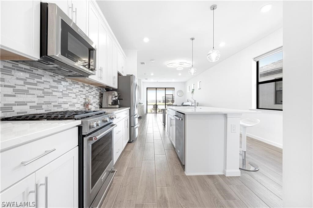 Welcome to 20039 Kingmont Drive,a beautifully maintained home in the highly sought-after Verdana Village community. This 2-bedroom Plus Den,2-bathroom residence features an expansive layout with a bright flex room that can double as a third bedroom,den,or office space. The open-concept design includes modern finishes throughout,a chef’s kitchen equipped with high-quality appliances,custom closet shelving for enhanced organization,and a spacious bedroom 2 closet with upgraded storage solutions. The laundry room offers additional cabinetry,a premium feature not typically found in standard models,while the extra-deep 24+ foot garage includes built-in storage shelving. The home is further enhanced by its serene outdoor living space,where you can relax in the backyard and enjoy breathtaking lake views. Additional features include a whole-house generator,ensuring peace of mind and reliability during power outages,and elegant gray-tone plank flooring to complement the home’s contemporary aesthetic. Residents of Verdana Village benefit from a world-class amenity center featuring a resort-style pool,state-of-the-art fitness center,sports courts,walking trails,and scenic green spaces,offering the perfect blend of luxury and tranquility. This home is an exceptional opportunity to experience modern living in a vibrant,family-friendly community.