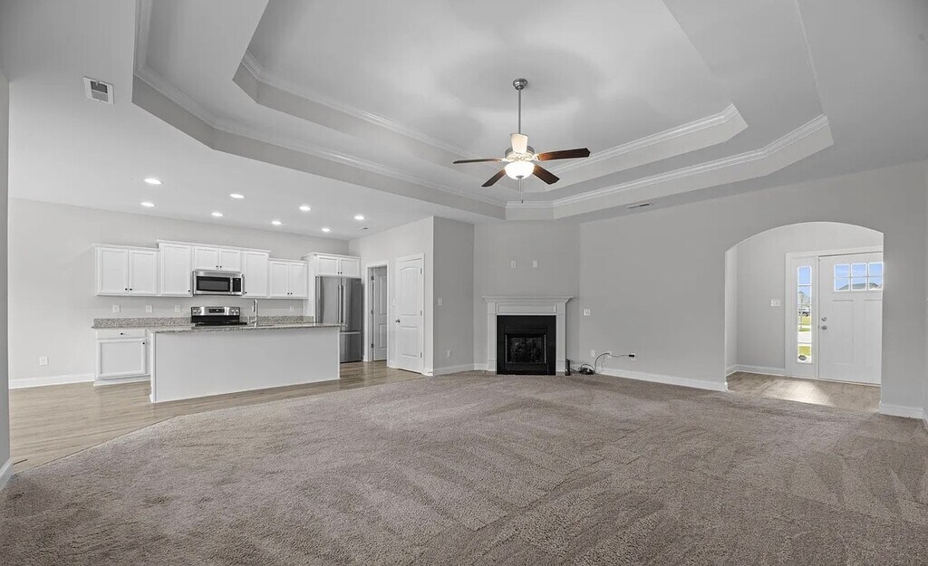 Start the New Year right with a never lived in, new construction home for rent in the beautiful new community of Bluewater Rise. This 3 bedroom 2 bath home features an open floor plan with large windows allowing an abundance of natural light. Double tray ceilings in the living room and the main bedroom add to the feel of a large open space right when you walk in. All bedrooms are large allowing plenty of space for furniture. The main bedroom has a very roomy walk-in closet and bathroom with double sinks and a separate shower from the tub. This community is just a short drive to downtown New Bern, the Atlantic Coast and a short commute to MCAS Cherry Point.