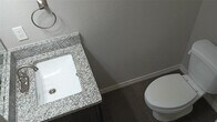 Charming two story with private bedrooms up. Each with full bathrooms. Cozy but open living dining area with one half bath on first floor. Tile flooring downstairs and carpet or laminate upstairs. Granite counter tops in kitchen and bathrooms. Fenced in patio and reserved parking available.