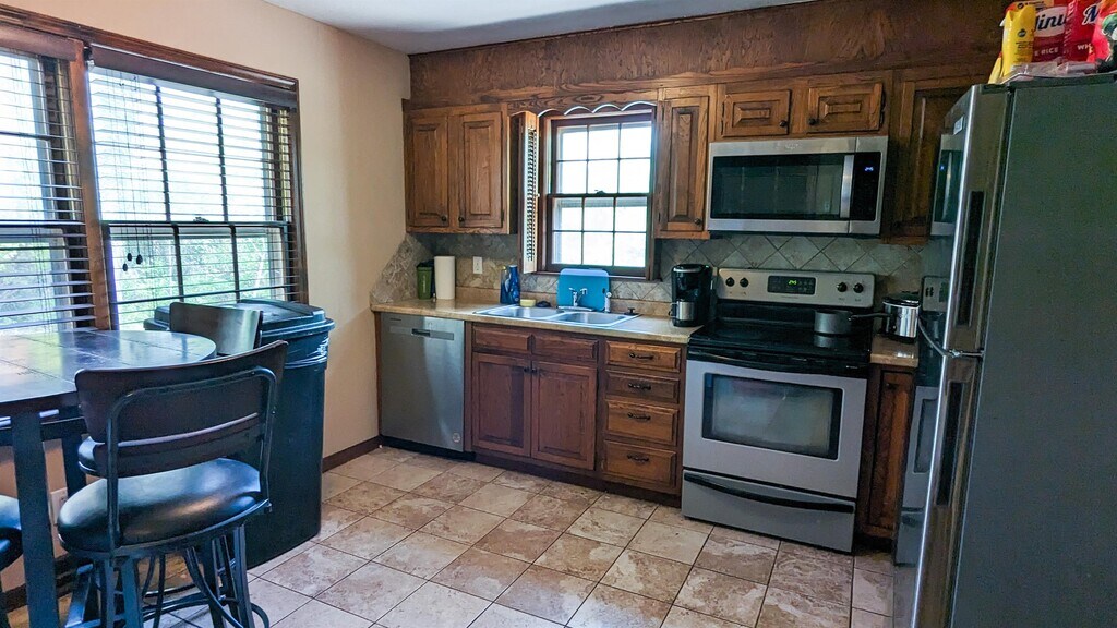 AVAILABLE as early as Nov 1st 2025: This 5 bedroom 3 bath multi-level house with attached 2 car garage and very private treed backyard has 3 living spaces to spread out in plus a formal dining room in a fantastic family neighborhood. The front door opens up to a foyer and formal living room with formal dining between it and the kitchen. The updated kitchen has a peak through window to the informal living room with built in-s and access to the oversized screened in porch. Up the first set of half staircase are 3 bedrooms and a full bathroom. One of those bedrooms is the primary bedroom with its own full bathroom. Up a 2nd set of stairs is an oversized 4th bedroom with 2 closets. The first set of half staircase leading downstairs is the 5th bedroom with access to the backyard. On this same level is a 3rd full bathroom and large family room. Down the last set of half staircase is the laundry, storage and lastly 2 car garage. The photos of this house don't show half the spaces it provides. Owner provides all kitchen appliances: refrigerator, dishwasher, range, microwave/hood; as well as the clothes washer and dryer. Located on a quiet cul-de-sac. Tenants are responsible for lawn care, snow removal(as you wish), electric, gas, water and trash. Managment will provide landscape cleanup 1-2x per year keep bushes/trees trimmed. Dogs with great rental history, over the age of two and fixed will be considered with pet fee and deposit. No aggressive or giant breeds. No cats. No smoking of any kind inside or outside of the home. Feel free to call/email/message me for a private tour. Video walk-through available upon request.