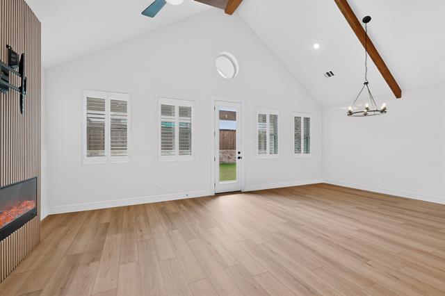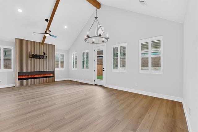 Brand new and move in ready, this stunning 5 bedroom, 4 bath modern farmhouse blends timeless charm with high end contemporary upgrades throughout. The home features elegant plantation shutter blinds, designer light fixtures that elevate every room. The expanded family room offers an impressive gathering space, highlighted by a sleek modern fireplace that enhances the home’s warm farmhouse character. The gourmet kitchen stands out with expansive countertops, a double oven, and premium finishes—perfect for cooking, hosting, and everyday living. A dedicated formal dining room provides an elegant setting for meals and special occasions. The luxurious primary suite includes a custom accent wall, a spa inspired bathroom with a stand alone soaking tub, and beautifully upgraded finishes. All guest bathrooms feature modern standing showers, offering comfort and convenience for family and visitors. Outdoor living is exceptional, featuring a welcoming farmhouse style front porch, extended outdoor living area, and a large, private backyard ideal for entertaining, relaxing, or future enhancements. With its thoughtful design, upscale finishes, and fresh construction, this home delivers the perfect blend of style, comfort, and move in ready convenience. Appliances can be provided with up charges.