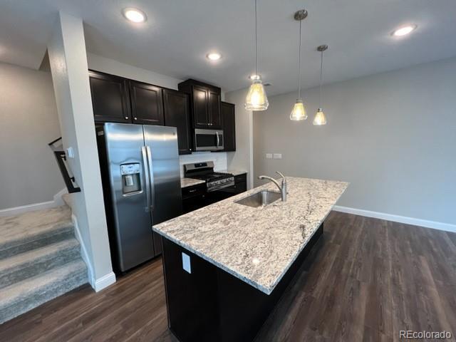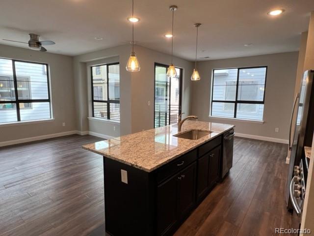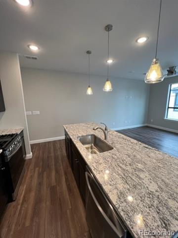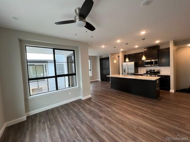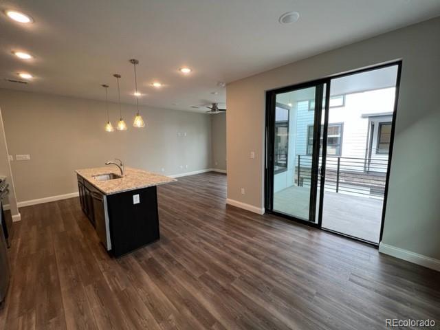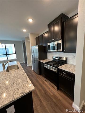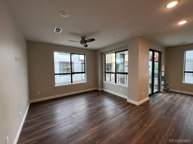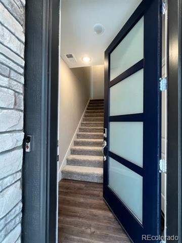 Contemporary townhome built in 2021. Two story with attached 2 car garage. The main floor has a spacious great room combining the kitchen, living room, dining area and a half bath. The beautiful kitchen is highlighted with a gas stove, sleek quartz, kitchen island and plenty of storage. Off the kitchen is a large covered balcony/patio area. Upstairs features the primary suite with a large private bathroom (double sink and a huge walk-in shower) and a walk-in closet. There is one additional bedroom, a full bathroom and laundry. Great location. Easy access to downtown, 1-25 and the DTC area. Tenant responsible for gas, electric, water and sewer. Owner pays for trash, HOA, taxes and insurance. 1 year minimum lease. Townhouse MLS# 9333430