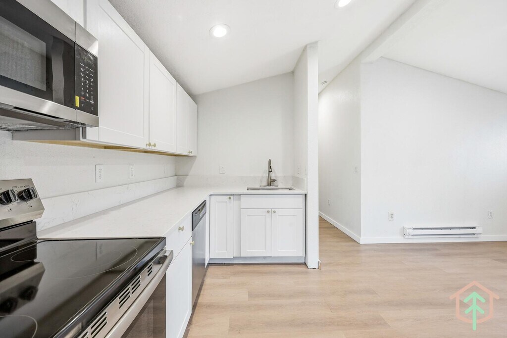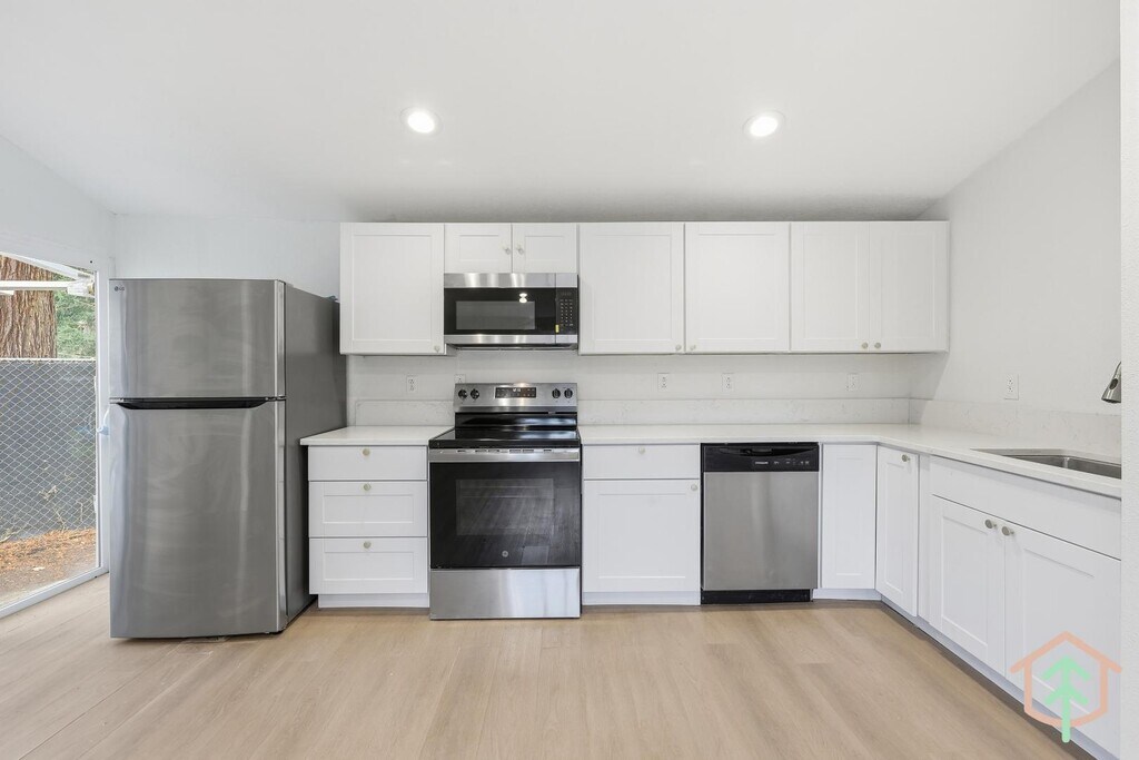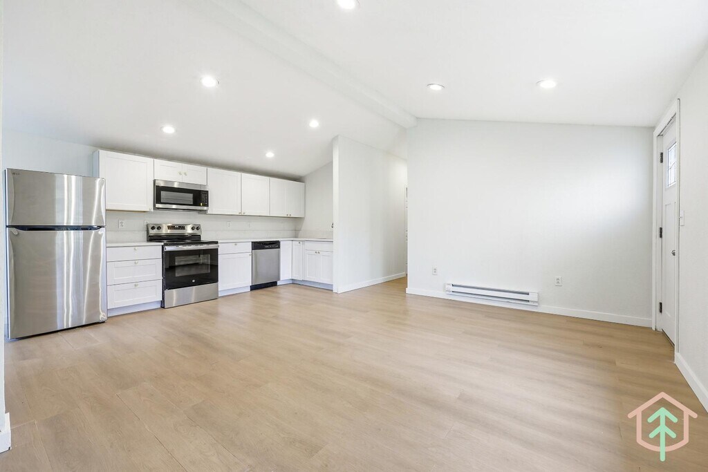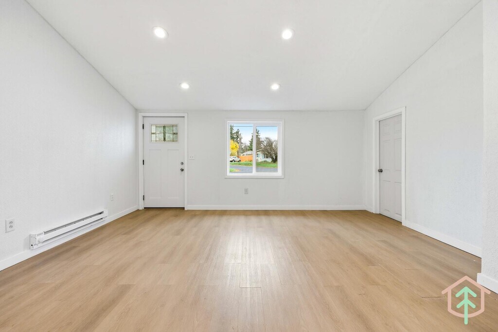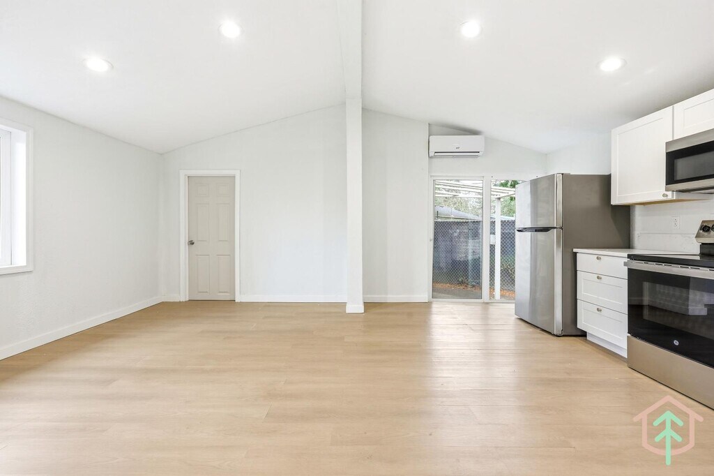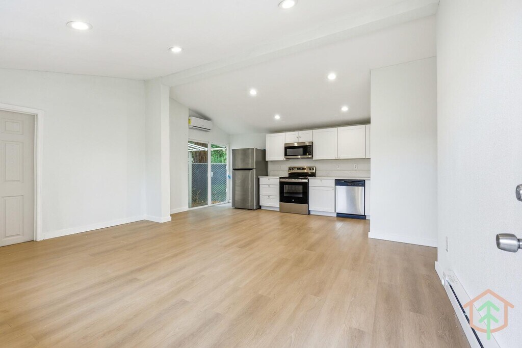 Welcome home to this beautifully renovated single-level 3-bed, 1-bath retreat offering comfort, privacy, and a fresh modern feel. The gated corner lot provides security, space for pets, and extra room to enjoy. With an attached garage plus additional parking, convenience is built right in. Inside, luxury vinyl plank flooring flows through every room, while the fully updated kitchen features stainless appliances, floating shelves, and stylish finishes. Fresh interior and exterior paint brighten the entire home, and the energy-efficient mini-split system keeps you comfortable year-round. A washer and dryer are included for easy move-in, and the layout offers flexibility for work, guests, or relaxation. Close to shopping, parks, and transit, this home delivers modern living in an ideal Portland location. Professionally managed for a smooth experience.