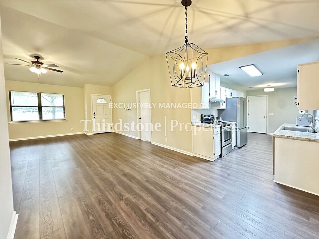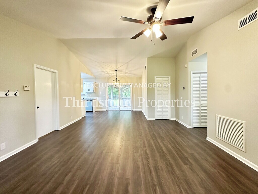 Welcome to this inviting 3 bedroom, 2 bath home with an attached one-car garage. A charming covered red brick front porch greets you at the entrance, setting the tone for the comfort and style inside. Step into the spacious living room where durable vinyl plank flooring flows throughout the home. The kitchen is a standout, offering ample storage in white shaker cabinetry, granite countertops, a bright bay window, and stainless steel appliances, including a dishwasher. The dining area opens to a large covered, screened-in porch, perfect for relaxing or entertaining while overlooking the backyard. Unique lighting fixtures add character throughout, and numerous windows with blinds provide natural light along with privacy. The primary bedroom includes a generous walk-in closet and private bathroom, creating a comfortable retreat. A convenient laundry room with washer and dryer is also included. The residents are responsible for all utilities and lawn care. Small pets are welcome, breed and weight restrictions may apply. Application fee $55 per person 18 and over. Lease Term: 12 months. If your application is approved, we require the lease to be signed and the security deposit to be dropped off to our Riverside office in the form of a cashier’s check or money order within 48 hours. There is also a one-time $100 lease administration fee due when the security deposit is dropped off. This fee is not based on the number of applicants. MINIMUM CRITERIA: VERIFIED GROSS INCOME MUST BE AT LEAST 3 TIMES THE MONTHLY RENT. ALL TENANTS 18 YEARS OR OLDER MUST SUBMIT AN APPLICATION. MINIMUM CREDIT SCORE OF 600. ADDITIONAL $500 REFUNDABLE DEPOSIT REQUIRED FOR ONE PET. $100 ADDITIONAL DEPOSIT PER PET. THERE WILL BE A $35 MONTHLY PET RENT APPLIED PER PET.Vinyl Plank