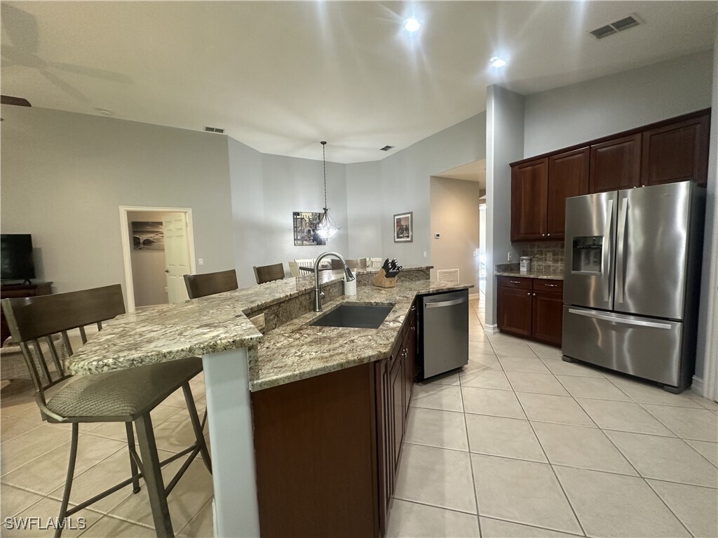 AVAILABLE FOR SEASON 2026 ~ 1 Month Minimum... 3 MONTHS PREFERRED! NEWLY FURNISHED AND DECORATED WITH A BEAUTIFULLY RENOVATED KITCHEN! This coach home features 3 bedrooms plus a den,two bathrooms,ATTACHED garage to park 1 vehicle with an extra outside parking space. FEATURES INCLUDE: Open Kitchen with Stainless Appliances,NATURAL GAS COOKING and Granite Countertops,Tile flooring throughout the main living areas,laminate flooring in the bedrooms and den,and a NEWLY Carpeted Staircase. This wonderful 2nd floor Coach Home located in Amenity Rich Tarpon Bay just minutes from shopping,movie theaters,some of the finest restaurants Naples has to offer,can be your winter retreat! The community consists of 352 homes in five neighborhoods,offers natural preserve areas,lakes and the the Castaways Club. While being well known for the fantastic amenities,Tarpon Bay boasts a spectacular invisible edge resort style pool,state of the art fitness center,fishing pier,clay tennis courts,beach volleyball,basketball,BBQ and a community center with a business center,billiards room and card room. All of this without breaking your budget! SORRY... NO PETS PER THE ASSOCIATION.