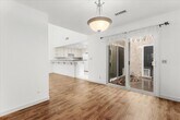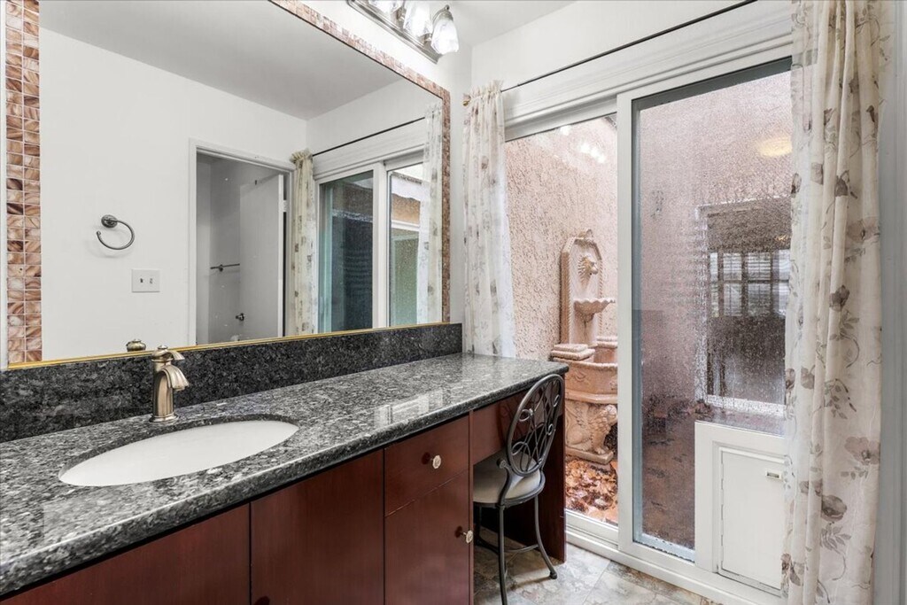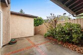 Warm and inviting 2 bedroom, 2 bathroom condominium offering approximately 1,482 square feet of comfortable living space in the Woodlands community. Light filled living and family rooms feature vaulted ceilings, wood style flooring, and a charming fireplace, with sliding doors that open to a private interior courtyard and separate back patio for seamless indoor outdoor living. The kitchen offers generous cabinetry, ample counter space, and direct access to the dining area, ideal for everyday living and entertaining. Both bedrooms are well proportioned, including a spacious primary suite with en suite bath. Enjoy direct private access from the street, an attached two car garage with in unit washer and dryer, plus water and HOA fees included. Community amenities include a sparkling pool and tennis courts. A rare blend of privacy, space, and convenience. Schedule a tour today.