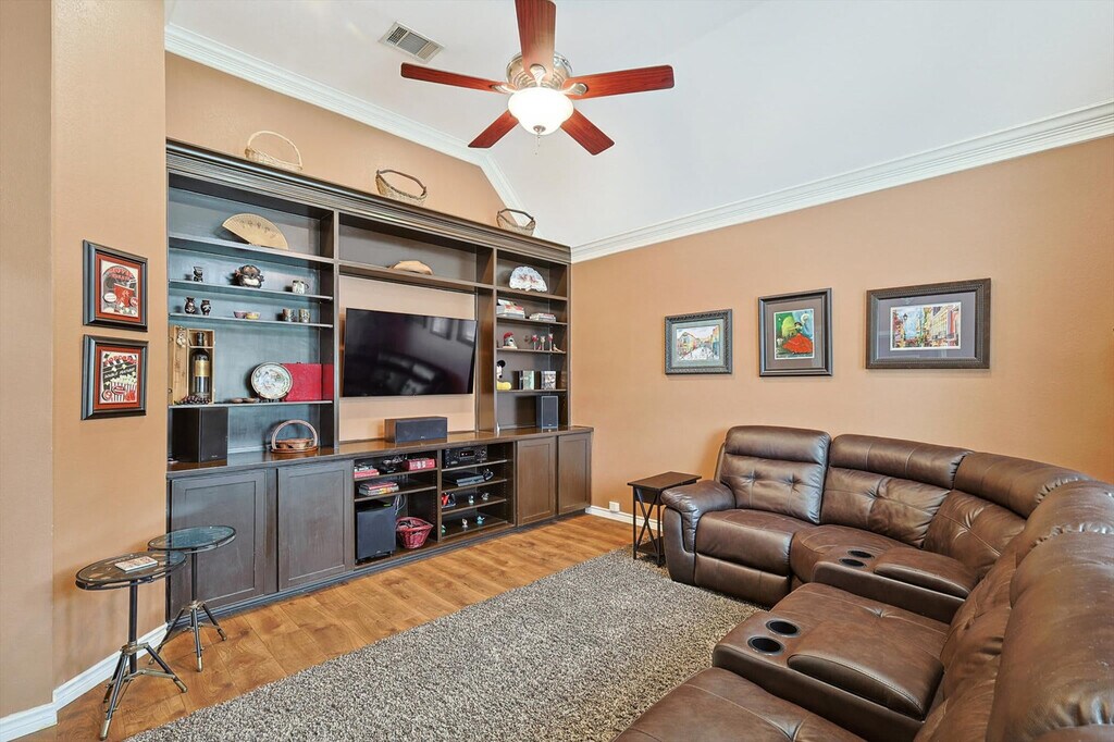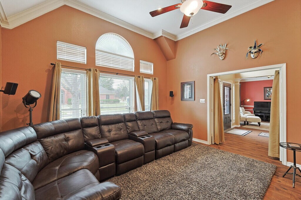 Welcome to this exquisite vacation home in Flower Mound, offering a spacious interior with a media room, a backyard featuring a private swimming pool, and a furnished patio. With 4 bedrooms and 3.5 bathrooms, this home comfortably accommodates up to 8 guests. Conveniently located just minutes from local attractions, you'll feel at home in this charming retreat. This Flower Mound home is full of charm and thoughtful features, making it the perfect vacation getaway. The fully fenced private backyard is a delight with an outdoor swimming pool, furnished patio, and BBQ grill. The home caters to both short-term and medium-term stays, providing a welcoming and comfortable "home away from home" experience. The kitchen is fully equipped with stainless steel appliances, including Wolf M series professional double ovens and a Bosch 36” Benchmark Induction cooktop. The spacious living area features an oversized sectional, flat-screen TV, and high-speed Wi-Fi, while the dining area offers seating for 6+ guests with access to the backyard. Free parking is available in the double garage and on neighborhood streets. A laundry room with a washer and dryer is provided for your convenience. We welcome house-trained pets with a non-refundable pet fee of $150 per pet, with a maximum of 2 pets per stay. An additional nightly rate applies for more than 6 guests, with a $29/night fee for each extra guest. Flower Mound is a lovely suburb of Dallas, known for its rural, small-town feel and family-friendly atmosphere. Located only 16 minutes from the DFW airport, the neighborhood offers plenty of restaurants, coffee shops, and parks to explore. Nearby attractions include Twin Coves Park, Bridlewood Golf Club, and CAC Water Park. For those interested in exploring Dallas, noteworthy attractions such as the ICR Discovery Center and Six Flags Over Texas are just a short drive away. Smoking of any type is not allowed, with violations subject to a $450 fine plus the cost to clean, deodorize, and repair damages. Check-in is at 4pm and checkout is at 10am. No parties or large gatherings are allowed, and only registered guests are permitted on the property. A noise alert device is installed to monitor decibel levels and ensure compliance with local noise ordinances. The spa heating element and jets are inoperable, and the fireplace is gas-operated, to be used at your own risk. Please bring your own pool towels if desired. The home offers high-speed Wi-Fi and a spacious living area designed for creating great memories with family and friends. The media room includes a large TV with surround sound, movies, and board games for entertainment. Registration Number: 15256 HOT [SI]