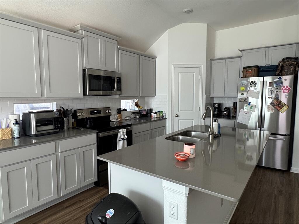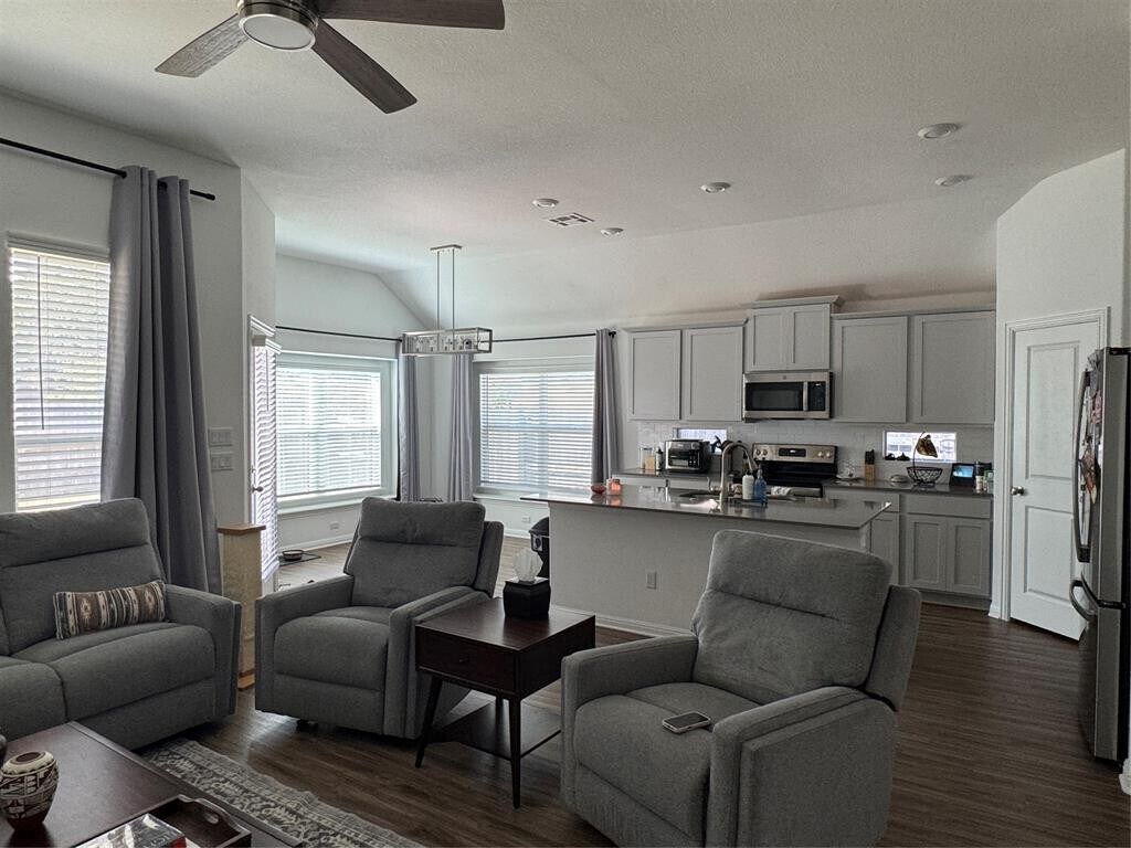 Welcome to 2005 Long Shadow Lane, a beautifully maintained home in the Oaks at San Gabriel / Rancho Sienna neighborhood, offered with all appliances included (washer, dryer, refrigerator). This home features about 2,122 sq ft, 4 bedrooms and 3 full baths, an open layout that naturally invites in light, and high-quality finishes throughout. The gourmet kitchen offers modern cabinetry, stainless appliances, and a large island that flows into a cozy family room and breakfast area. You’ll also love the private backyard, which backs up to a greenbelt, giving you added seclusion and scenic views. Residents here enjoy resort-style amenities including a sparkling community pool, walking and biking trails, shaded pavilion, picnic areas, playground, and over 100 acres of open space. The property is served by Liberty Hill ISD, giving you access to the highly regarded schools in the area. This home offers a rare blend of comfort, convenience, and natural serenity.