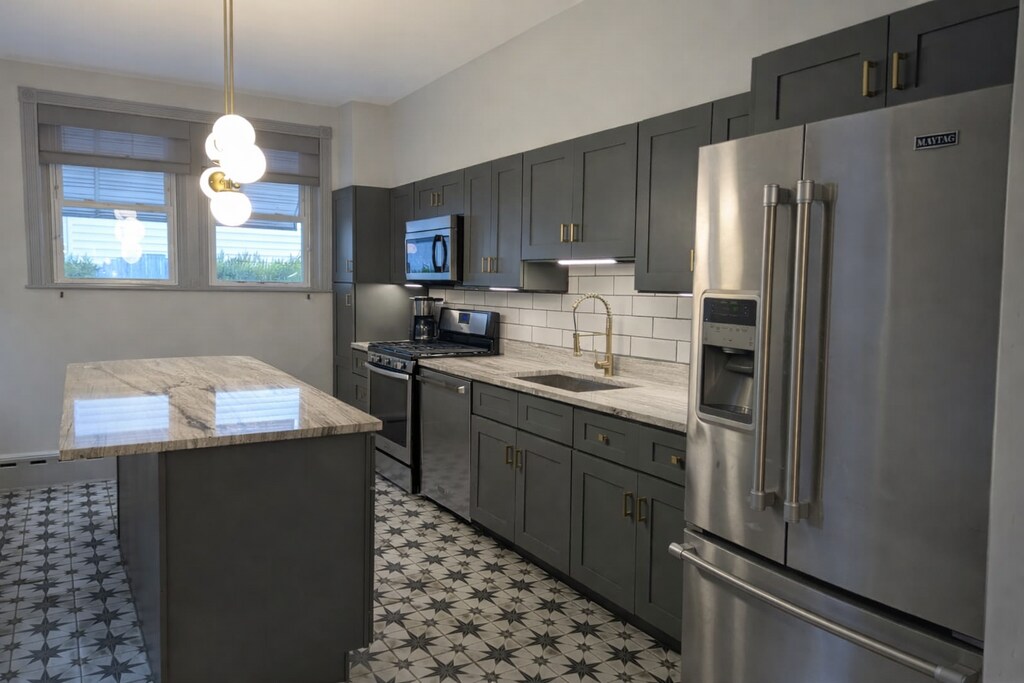 A beautifully updated South Philadelphia home with classic brick curb appeal and a charming front entry. Inside, you'll find bright, open living space with gorgeous hardwood floors (including detailed inlay), recessed lighting, and a layout that flows comfortably from the living area through the main level. The kitchen is a standout, featuring modern gray cabinetry, sleek countertops, a large island for prep or seating, a subway-tile backsplash. Offers three bedrooms, including a spacious primary bedroom with a walk-in closet, plus 1.5 bathrooms. The powder room has stylish finishes, and the full bath includes a tiled tub/shower and updated vanity. Washer and dryer hookups are available. Window AC units are planned to be installed in the spring. *Tenant pays gas, water, and electricity. *Move-in cost: $7,800 (1st month rent + x2 security deposit). *Tenant's gross income must be 3x rent. *The application fee is non-refundable and is $45 per adult.