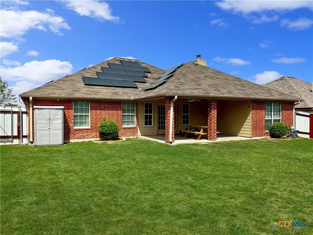 Get ready to fall in love with this beautifully renovated 4-bedroom,2-bath home! With 1,855 sq ft of open living space,it boasts a spacious living and dining area,a stunning updated kitchen,and modern bathrooms designed for comfort and style. Beat the Texas heat without breaking the bank and enjoy truly affordable living with Solar Panels. The backyard is an absolute haven,featuring a massive covered patio perfect for entertaining and relaxation,along with a swing set for the little ones. A large shed with electricity offers versatile space for a craft room,workshop,or extra storage. This prime location puts you just minutes from Fort Hood Army Base,Baylor Scott & White Hospital,shopping,and restaurants,making daily life a breeze. And with no HOA,you have the freedom to park your truck,RV,or boat in your own driveway! This incredible opportunity won't last long—schedule your showing today and start envisioning your life in this amazing home.