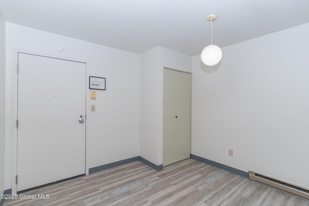 750 square foot,1st floor 2BR and 1 Bath apt with newer LVP flooring,heat and hot water included. Secure building with plenty of parking,garbage service and a community space for friends and family gatherings. Great location with ample parking and coin laundry