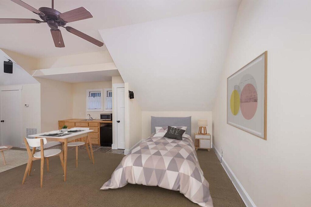 Room for rent: Get up to half a month free! Apply Now! Private bedroom in this beautiful 5 bed, 3 bath Fort Worth home. Step past the big, welcoming front porch for a contemporary interpretation of vintage elegance. Flooring is a mix of beautiful ceramic tile, wood, and carpeting with high ceilings, ceiling fans, and recessed lighting throughout. The eat-in kitchen boasts granite counters, a center island, and stainless steel appliances, including a gas stove, built-in microwave, dishwasher, and french door fridge. Outside, a patio, pergola, and yard provide even more space for relaxing and entertaining. This home also features professionally furnished common areas, A/C, a tankless water heater, in-home laundry, and a two-car garage. Note: Bedroom five is a large, private suite that’s detached from the main house with a separate entrance. It includes its own bathroom, kitchenette area, recessed lighting, and ceiling fan. Even though it was built in 2009, this property feels right at home in the Fairmount-Southside Historic District. Downtown Fort Worth is less than three miles away, and Dallas is 33 miles via I-30 W. Closer to home, it’s minutes to Trinity Park, Texas Christian University, and the Fort Worth Zoo. Kroger, Tom Thumb, and Target Grocery are all within a short drive. And within a mile, choose from top dining options, including Maggie’s R&R, Four Sisters, Game Theory Restaurant + Bar, and Fixture. All property visits must be coordinated through Bungalow to respect the privacy of residents.. If Bungalow learns that you have visited a property without authorization and/or violated the privacy of the existing tenants, your application may be denied and you may be banned from using our services in the future. About Bungalow: We are on a mission to take the hassle out of renting. When you live in a Bungalow managed property, you are getting a modern, tech-enabled, responsive landlord from Day 1. We have all your needs covered, from utility setup to flexible lease terms, an easy-to-use app for paying rent, on-staff maintenance technicians, a dedicated team of customer support experts, and even optional furnishings and monthly cleanings. Find out why thousands of renters are choosing to rent with Bungalow.