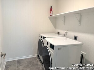 Tucked away on a peaceful cul-de-sac with no neighbors in front or behind, this beautiful 2-story home combines privacy, comfort, and convenience in one perfect package. Offering 2,242 sq. ft. of well-designed living space, the home features 4 spacious bedrooms, 2.5 baths, and an open-concept layout that's brightened by natural light and accented with elegant plantation shutters throughout. The heart of the home is the modern kitchen, showcasing granite countertops, an electric stove, a breakfast bar, and plenty of cabinet space. All kitchen appliances, along with the LG ThinQ washer and dryer, are included in the rent-making this home truly move-in ready. The adjoining living and dining areas open to a covered patio, ideal for hosting friends or enjoying quiet evenings outdoors. Upstairs you'll find a versatile loft space and four generous bedrooms, each with walk-in closets. The primary suite offers a relaxing retreat with its oversized walk-in shower and rain shower head. Additional features include a water softener, LG French door refrigerator, 2 extra thermostat sensors, and a full sprinkler system to keep the yard green year-round. Situated within walking distance to the community pool and park, and just minutes from Hwy 211 and Hwy 90, this home offers both convenience and comfort. With thoughtful upgrades, included appliances, and a prime location, this rental is a rare find.