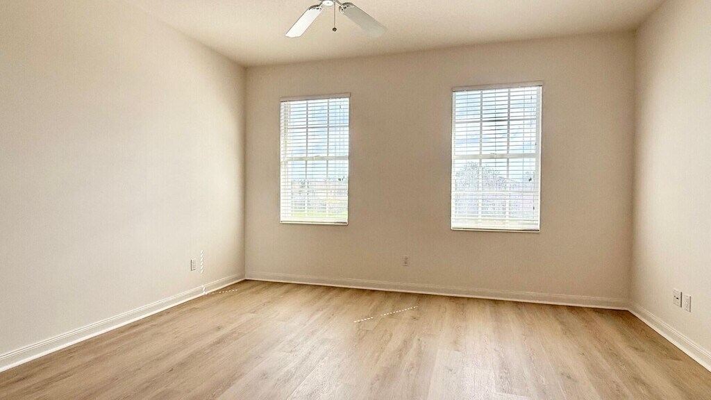 Beautifully maintained 3 bedroom, 2.5 bathroom townhome with 1-car garage in the highly desirable RiverWalk community. This bright and spacious home features brand new luxury vinyl plank flooring, fresh paint throughout, and a screened private pool overlooking the lake. The principal suite offers a large walk-in closet and an en-suite bathroom with dual sinks, soaking tub, and separate walk-in shower. Two guest bedrooms share a full bath, plus there is a convenient laundry room with full-size washer and dryer. Rent includes cable, internet, pool service, and access to all of RiverWalk's resort-style amenities. Immaculate and move-in ready!