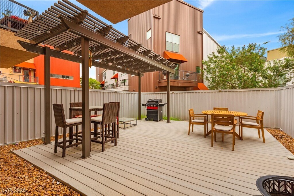 Modern 3-story City Loft in the heart of the Fremont East District Downtown, just steps to Restaurants, Coffee Shops, Bars, Theater & The Arts District. This contemporary 3 bd/rm Townhome Loft is the largest offered in this subdivision. The vaulted 18' ceilings, modern concrete and upgraded hardwood flooring, combine with oversized windows to bring in natural light. The first floor has 2 bedrooms, one full bath and with access to an ultra large deck in the back, a custom pergola, ready for entertaining. The 2nd floor has an Open Floor Plan with a Kitchen, Pantry and a Massive Great Room which provides the feel of a Trendy City Loft. The third floor features a Large Primary Bedroom and Walk-in Closet. The Master Bath includes Duel Sinks and a Light and Airy design with a Chic Duel Headed Shower. The third floor also features an Office Loft With A View, and Plenty Of Light! All appliances are included to make this a true turn key property.