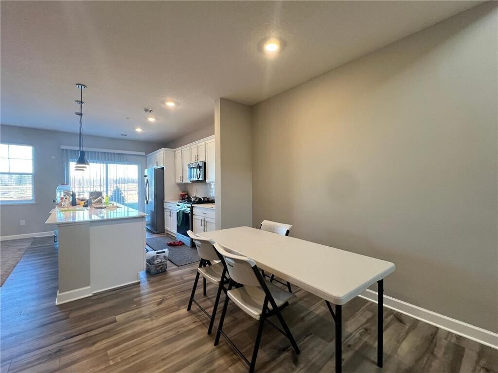 Beautiful 3 bed 3 bath Townhome, 2024 built, ready for immediate move. Tevera community is the newest community in Corcoran!! The St Clair floor-plan offers spacious townhome living between two floors at 1,777 sq. ft! . Exceed your expectations of town home living with the charming St Clair plan! This home features many sought after options & upgrades including white soft close kitchen cabinets, quartz counter-tops throughout your home and brand new stainless steel appliances. The St Clair boasts of natural light along with 3 spacious bedrooms, 3 baths, essential upper level laundry with brand new washer and dryer, owners retreat, 2 car garage, relaxing great room and beautiful kitchen for an unmatched value. The all-encompassing kitchen, dining & great room allows for strong social engagement with guests or family in an open & airy space. All kitchen appliances including water softener, washer/dryer & blinds installed! Quick access to restaurants, department stores, and major highways.