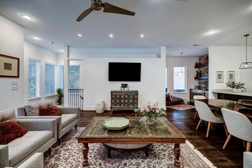 This meticulously maintained Contemporary villa is nestled on a desirable corner lot in Upper Kirby. The interior boasts designer finishes,a wine chiller,custom shelving and elegant marble and Oak hardwood floors. The living room is flooded with natural light and features custom window treatments. A 2nd-floor terrace offers picturesque views,while the landscaped patio is fully gated with a gas grill. The kitchen is equipped with Bosch stainless steel appliances,quartz countertops and a waterfall-edge peninsula. The primary suite impresses with a coffered ceiling and custom lighting. The ensuite bath offers a seamless glass shower and dual vanities. Additional bedrooms have their own en-suite bathrooms. The house is prepared with a natural gas-fueled generator capable of powering the entire home. This rental property provides the epitome of sophisticated living. Don't miss out on this opportunity! MLS# 80718677