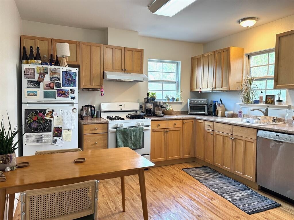 Located in the Zilker neighborhood and walking distance to several restaurants, coffee shops, and yoga. Several grocery stores nearby. Stand-alone 850 sq ft garage apartment at the rear of the property. Private setting with off-street parking for up to two cars. A stairway leads to a small deck and entrance. 2 spacious bedrooms, 1 bathroom with a living room, and a dine-in kitchen. The entire unit is very clean and functional. Lots of natural light with tree-top views of the neighborhood. Private laundry room hookups with luggage/ bike storage on the lower level. New in 2023: Central air and heat. Gas Stove, Dishwasher, and fridge. Keyless front entry. Cats and small dogs, under 15 lbs, welcome. No smoking inside.