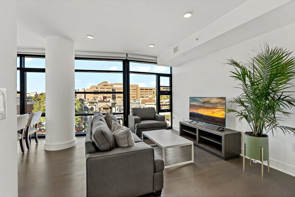 Feel at home in this luxurious 2-bedroom, 2.5-bathroom apartment in the heart of DC, situated on a quiet corner just steps away from DC’s iconic Shaw area. Parking is available in the garage for an extra daily or monthly fee and must be arranged in advance. Pets are welcome for an extra daily or monthly fee; please inquire before booking. Shaw is a vibrant upcoming hotspot for Washingtonians, with many restaurants, bars, and nightlife right outside your doorstep. Note that this is a busy street on the weekends. [SI]
