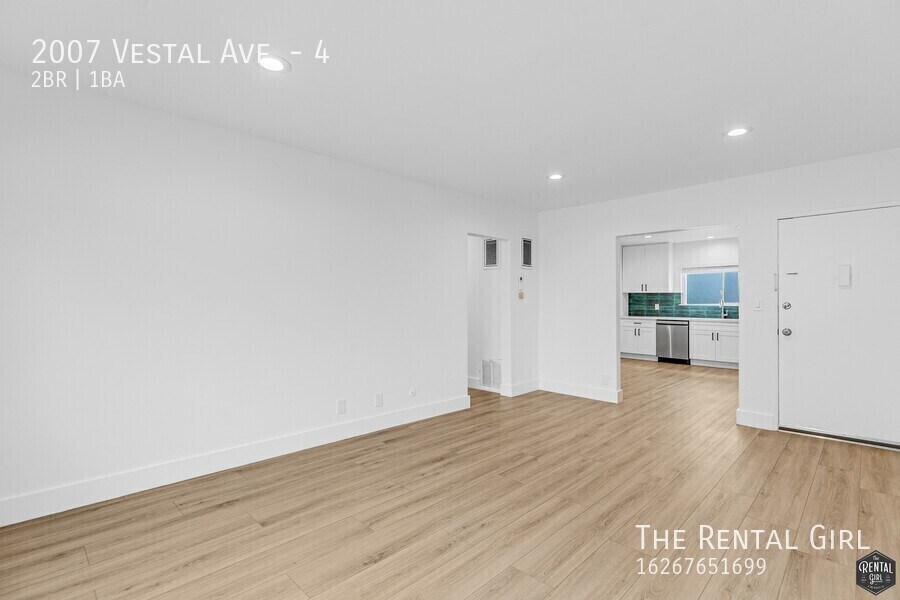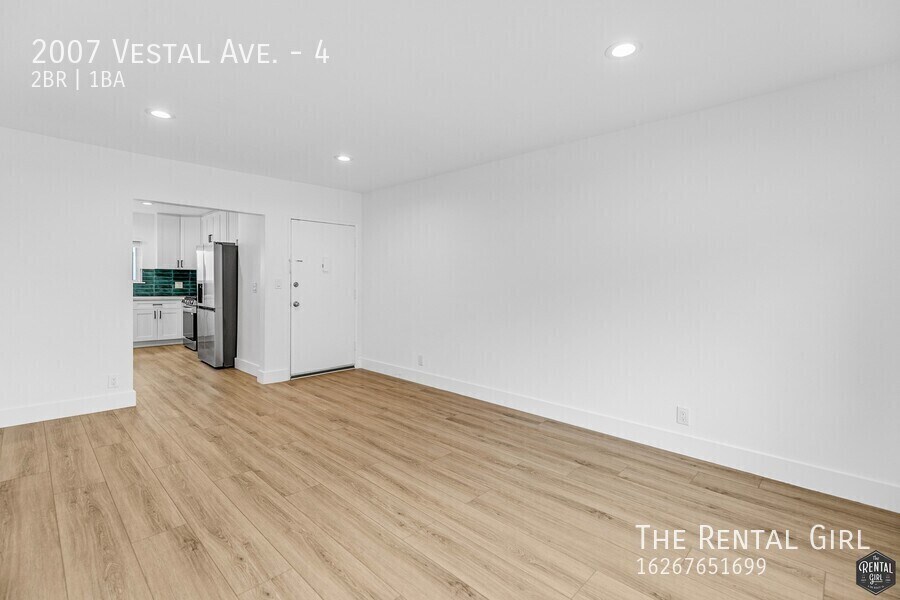 This upper unit on Vestal Avenue immediately feels like a place you can settle into. Sunlight moves through the space in the nicest way, and the light wood floors keep everything feeling warm, clean, and easy to live in. The kitchen brings its own personality with that custom green tile backsplash and a full set of stainless steel appliances, including a French door refrigerator, gas range, dishwasher, and built-in microwave. It has that fun, freshly updated look that makes cooking feel less like a chore and more like a vibe. Picture late-night pasta nights, weekend brunch at home, or grabbing a quick coffee before heading down to Sunset. The living and dining area in the kithcen have a natural flow and enough space to create your perfect setup, whether that is a cozy TV zone, a WFH nook, or room for dinner with friends. Off to the side, both bedrooms feel calm and comfortable with great light, and the updated bathroom in the middle brings that clean, modern feel with fresh tilework, a standing shower with glass doors, and black fixtures that give everything a little sleek edge. What really sells it is the setting. Vestal Avenue sits on a quiet hillside that feels tucked away but still gives you instant access to everything people love about Echo Park. Think morning walks to coffee, last minute errands at the local markets, dinner on Sunset, and the kind of neighborhood energy that makes living on the Eastside feel special. Not to mention, you get two tandem parking spots under the carport, which is a big win in this pocket of Echo Park! A fresh, inviting home in a location that just fits. Easy to imagine yourself here and even easier to want to stay!
