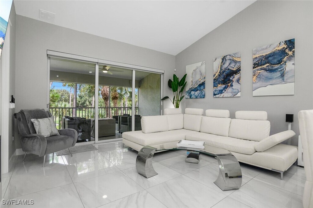 Welcome to this Gorgeous,Completely Renovated,Designer Furnished Coach Home,now available as an annual rental in Grandezza Golf & Country Club! Offered for the first time in Sabal Palm at Grandezza,this beautiful 2-bedroom,2 bathroom + den condo is true contemporary,luxury living throughout - offering a one-of-a-kind opportunity to live in what looks and feels like a designer model home. This second-floor condo INCLUDES internet,basic cable,water,trash and a detached one car garage with AC. INCLUDES community membership to the newly renovated clubhouse,pools,restaurants,tennis courts,shuffleboard,and state of the art gym. Close to SWFL Airport,Shopping,Restaurants,and beaches - Nothing will compare to the style and location of this property! Don't miss your chance to experience the pinnacle of SWFL Living!