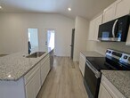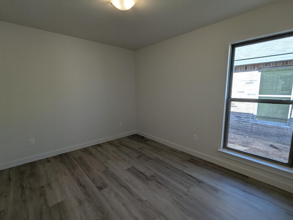 This 3-bedroom,2-bath,2-car garage home features a full brick exterior with a covered front porch and double columns. Luxury vinyl plank flooring runs through the common areas with an open-concept kitchen,living,and dining layout. The kitchen includes granite or quartz countertops,a large island with bar seating,stainless steel appliances,and an enclosed pantry. The isolated primary suite offers a walk-in closet,and the home includes both front and back covered patios with upgraded plumbing and lighting fixtures. Grass has been planted in the backyard. Pets considered on a case-by-case bases.