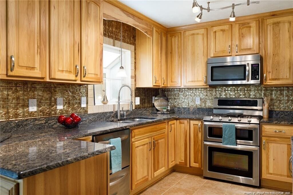 Beautiful, very spacious, Newly Renovated 4 Bedroom/2.5 Bath home located on a cul-de-sac! This home has a Formal Dining Room, Formal Living Room, Family Room, and a Sunroom!! New interior paint, new flooring and fixtures! New Hot Water Heater and new HVAC! Chef's kitchen with custom cabinets, granite countertops, backsplash, double door oven, double drawer dishwasher. Also, enjoy low-maintenance outdoor living on the waterproof vinyl deck—more durable and weather-resistant than traditional wood decking, with no need for staining or sealing. There's also a patio and storage above the large, two car garage out back. This backyard is perfect for entertaining! If you're looking for a home to brag about, this is it! Located near Fort Bragg military base, dining, shopping and entertainment!
