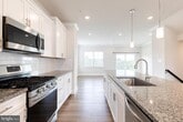 Live in Luxury in This Nearly New End-Unit Townhome! Experience upscale living in this beautifully maintained, 3-year-young end-of-group townhome. Enjoy the convenience of your own driveway and attached garage—no more scraping snow off your car in the winter! Step inside to a versatile entry-level space featuring a powder room and a flexible family room that's perfect for a home office, gym, or guest area. Upstairs, the main level offers a stunning open-concept layout with front-to-back sightlines and seamless flow—ideal for entertaining. The showstopper kitchen boasts crisp white shaker cabinets, gleaming stainless steel appliances, a massive center island with seating for 6+, granite countertops, and endless cabinet and prep space. Flanked by a spacious living room and a bright dining area, this floor is the heart of the home. The third level features two generously sized bedrooms that share a hall bath, plus a luxurious primary suite complete with a walk-in closet and spa-like bath—your personal retreat after a long day. At the top, you’ll find a versatile fourth bedroom that can serve as a second family room, game room, guest suite, or anything your lifestyle needs. And don't forget the private rooftop deck—perfect for relaxing, entertaining, or enjoying the peaceful green views.