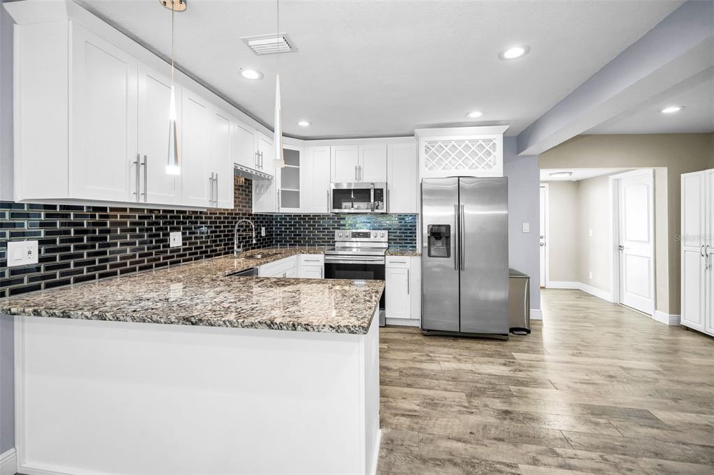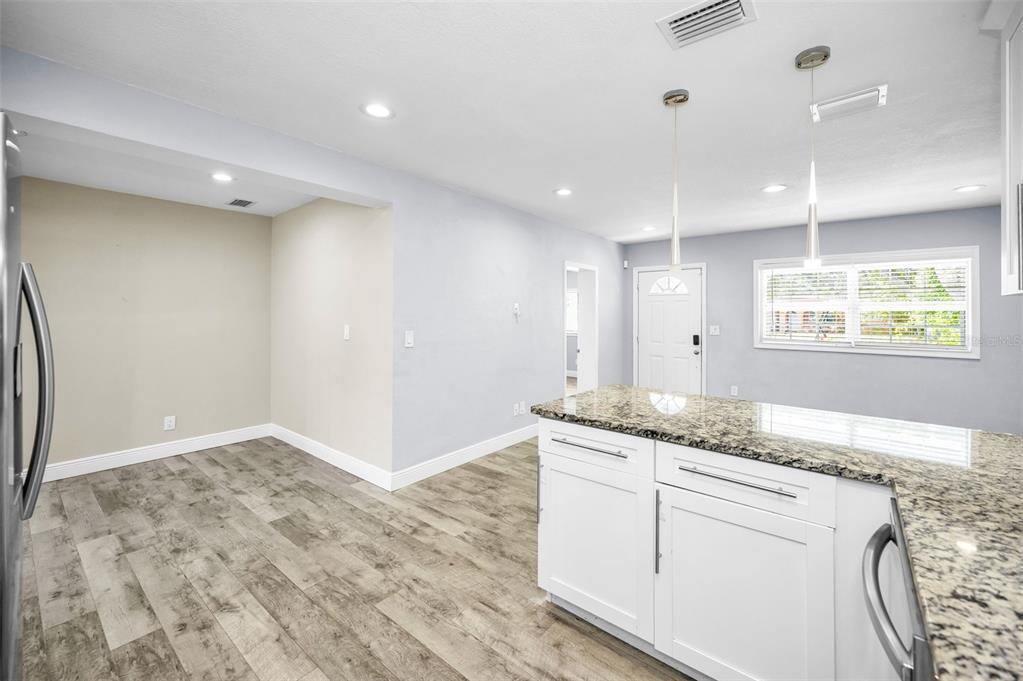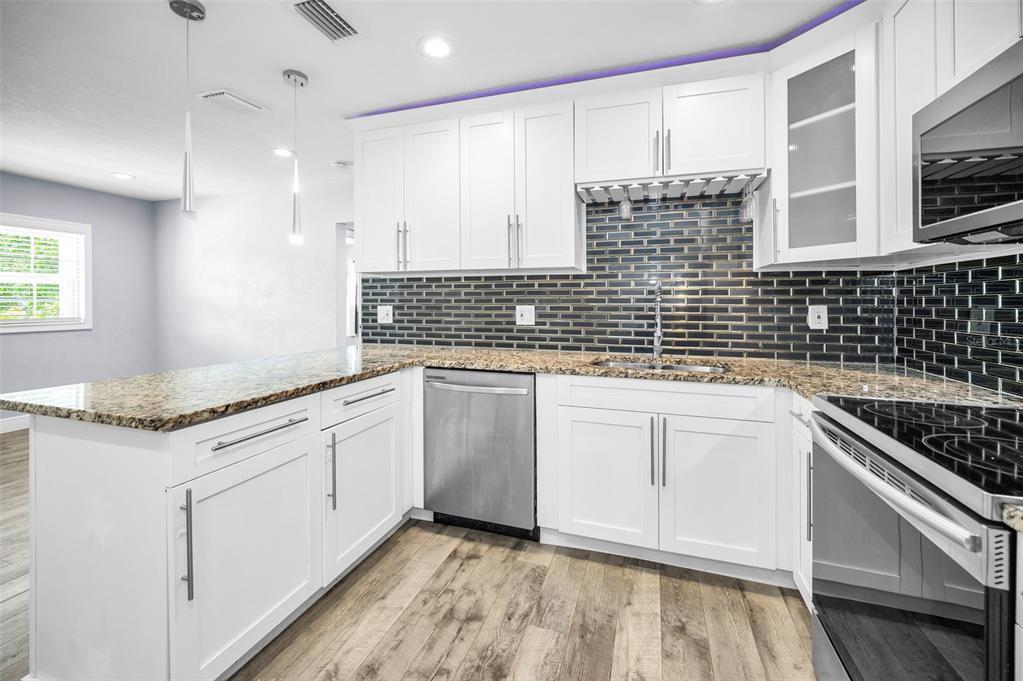 Welcome home to this beautifully updated 3-bedroom,2-bath block home,ideally located on a quiet street just minutes from vibrant Downtown Dunedin and Florida’s most stunning beaches. From the moment you arrive,you’ll notice the impeccable curb appeal,newer driveway,with lush tropical landscaping and a welcoming walkway that leads to a large front porch—perfect for enjoying your morning coffee. The kitchen has been completely updated with soft-close cabinets and drawers,quartz countertops,a tile backsplash,and a farmhouse sink overlooking the family room. Additional modern upgrades include recessed lighting,pendant lights,Samsung stainless steel appliances,under-cabinet lighting,and an eat-in kitchen that provides both storage and seating for guests. The kitchen opens to a spacious living/dining area,creating the perfect flow for entertaining. Newer double-pane windows let in the natural light and views of the beautiful front and backyard—this will be the prime place to gather after a fun night in Downtown Dunedin! The amazing outdoor space features mature landscaping,two large sheds,room to park a boat,and a fully fenced yard,creating your own private sanctuary. When it’s time to unwind,retire to one of the three spacious bedrooms. Two bedrooms are located on one side of the home,each with own closets,and share a completely updated guest bathroom with a shower and dual vanity. The primary suite,located on the opposite side of the home,boasts a walk-in closet and its own en-suite bathroom. You’ll appreciate the convenience of an indoor laundry room and plenty of storage. With a newer roof (2019),newer AC,water heater,and power panel—plus NO Flood Zone and NO HOA—the only thing left to do is move in and start living the Clearwater dream! MLS# TB8438562