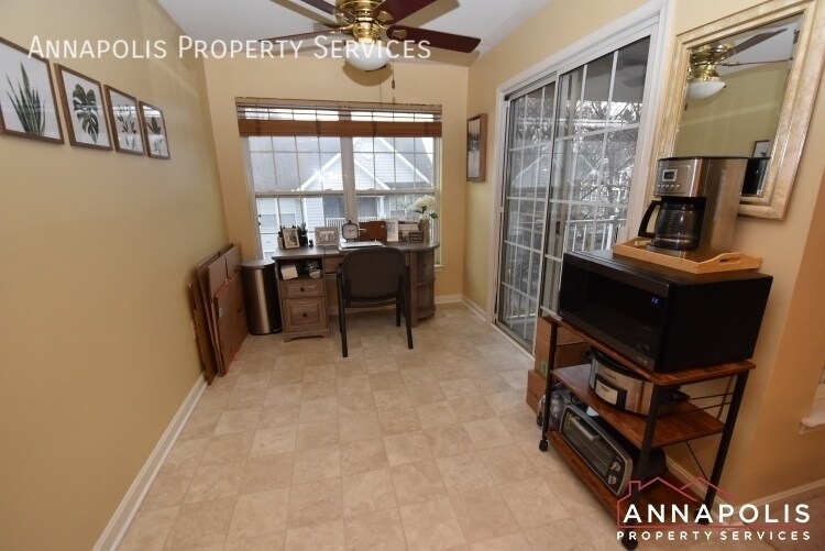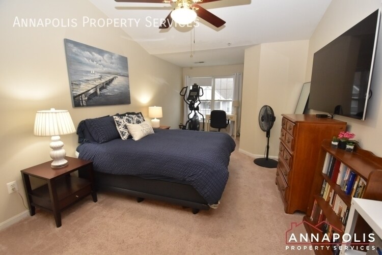 Superb top-floor two-bedroom, two-bathroom condo in the Tidewater Colony community of Annapolis. Open floor plan with a breakfast/sunroom, galley kitchen, balcony, and living room with a gas fireplace. Spacious master suite with dressing area and ceiling fan. Great location to downtown Annapolis and Rt 50. Community facilities include: Swimming pool, tennis courts, fitness center, and community clubhouse. Pet Information Cat : Yes Dog : Yes