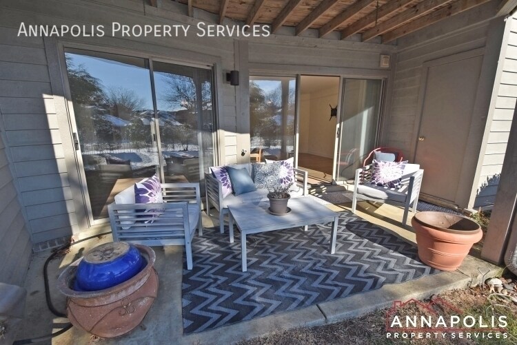 Fantastic ground-floor, two-bedroom, two-bathroom condo with covered front and back patios in the highly sought-after Chesapeake Harbour community of Annapolis. The home features a spacious open-concept living and dining area and a beautiful kitchen with stainless steel appliances and granite countertops. Enjoy two private outdoor spaces, with the front patio accessed from the kitchen and the back patio opening off the living room. The spacious primary suite offers a large walk-in closet and a private en-suite bath, while the second bedroom is well-sized, with built-in cabinetry, and located beside the second full bathroom. Chesapeake Harbour is a private gated community with tennis and pickleball courts, two swimming pools, BBQ grills, walking trails, and a private beach, the use of which is included in the monthly rent. Additional community facilities include a marina, waterfront cafe, and a pier. $200 HOA Move-in fee, and sorry, no pets allowed by the HOA.