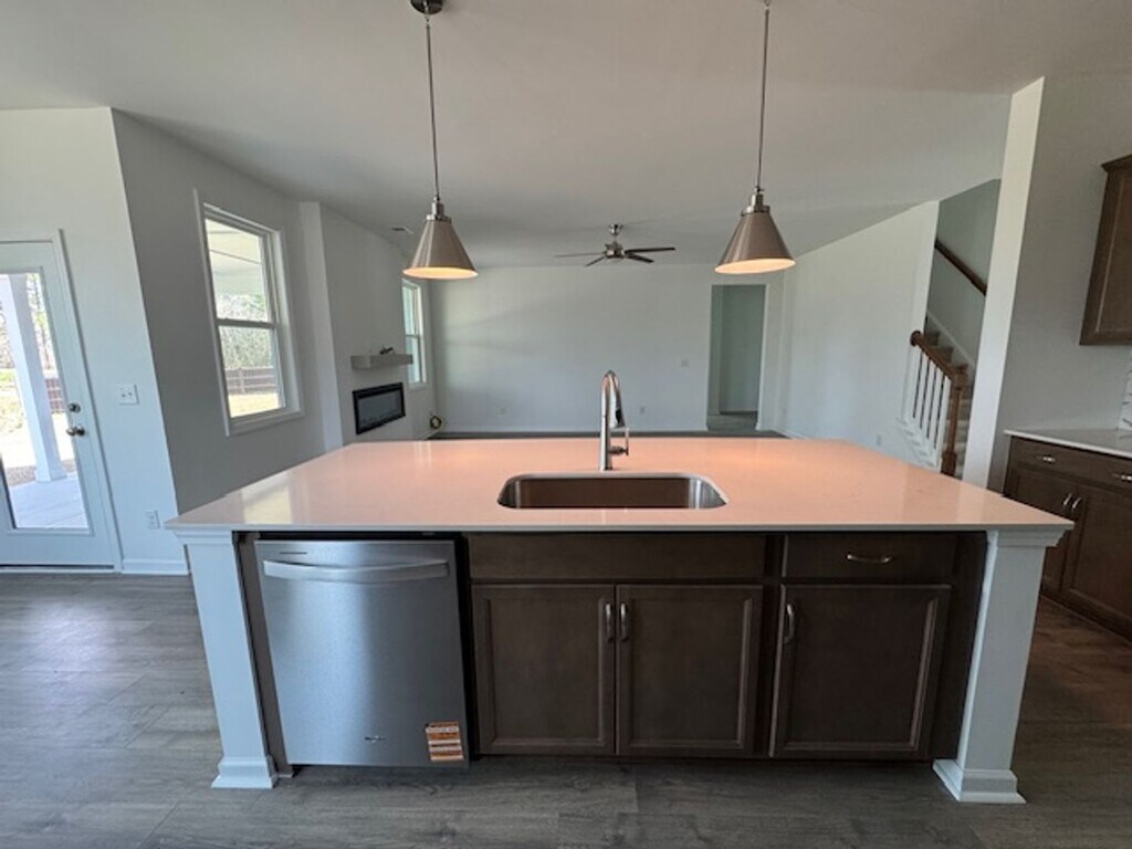 Welcome to 2008 Red Woodpeckers Court, a stunning new construction located in the charming town of Leland, NC. This beautiful home boasts four spacious bedrooms and 3 bathrooms, and bonus room providing ample space. The lower level features LVP flooring, while the upper level is carpeted for a cozy and warm atmosphere. The kitchen had a large island with stainless steel appliances. The home also features a two-car garage, providing plenty of space for vehicles or additional storage. The covered back patio is perfect for outdoor relaxation or entertaining. The home also comes with an electric fireplace! residents enjoy access to a variety of community amenities including a pool, clubhouse, pickleball courts, dog park, and more NO SMOKING