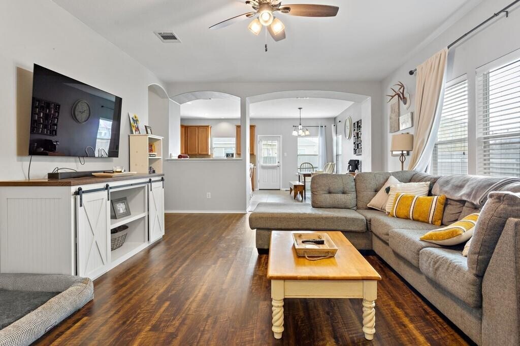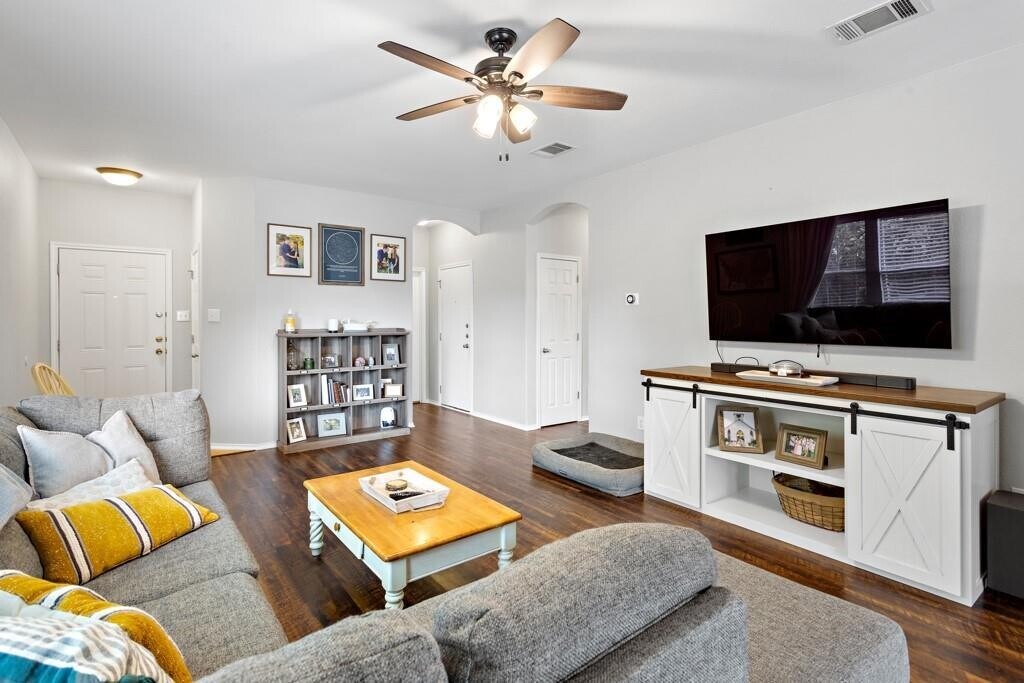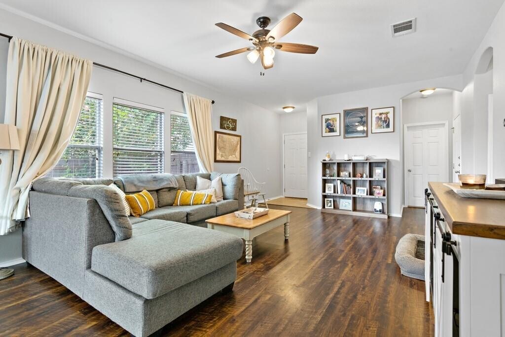 Welcome Home! This Darling, Open Floorpan is Move in Ready just for you! Wood look laminate and Tile run throughout the home with carpet only in the bedrooms. The Secondary bedrooms are off the main living area and have a spacious bathroom in the shared hallway. A large laundry room is tucked off the kitchen and leads to the Primary Suite. A bay window with an abundance of light make this cozy room feel huge! Kitchen has a large center island, tons of counter space and cabinetry, plus a Gas Range! This home is so close to the quaint and bustling town of Hutto. Moments to Restaurants, shops, banks and more. The High School and Elementary school are both right outside the neighborhood! Come see this one today!