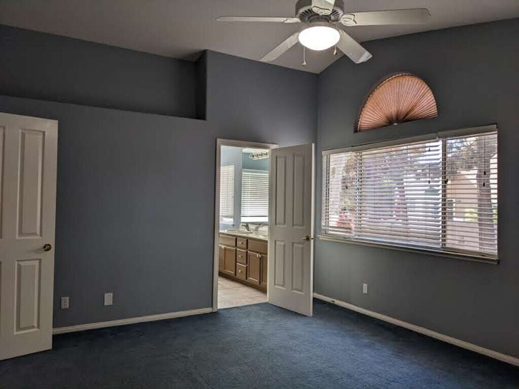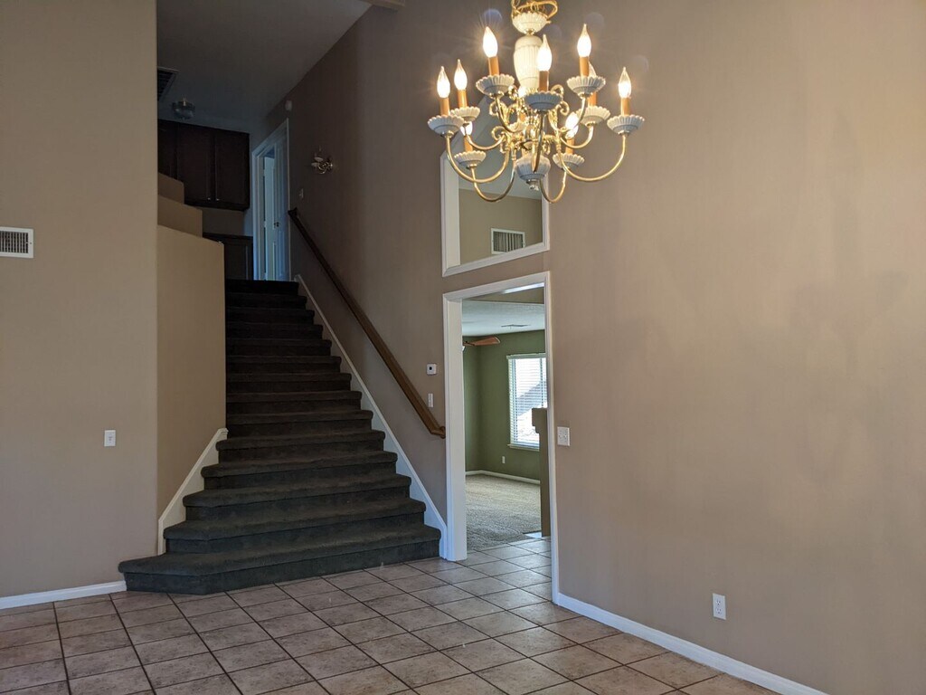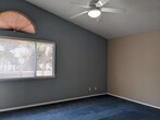 Stepping into this home, you are greeted by the formal living and formal dining rooms. Continuing, you will get to the kitchen, which has an island with granite countertops, a stove and a dishwasher, plenty of cabinet space, an eating nook that will separate the kitchen from your everyday family room, which is a sunken room with a fireplace and an entertainment center. Continue towards the back, you will find the downstairs bedroom and a 3/4 bathroom. Going up the stairs you will run into the large loft that can be used as a second family room or office. The primary bedroom comes with a ceiling fan and light, a walk-in closet. The primary bathroom comes with dual sinks, a separate tub, and a separate shower. Outside in the back, you will find the backyard with a covered patio, mature landscaping that provides shade year-round. Please note that the rent includes a $100 fee per month for the Sewer, Trash, and the Resident Benefit Packet. Please call with any questions.
