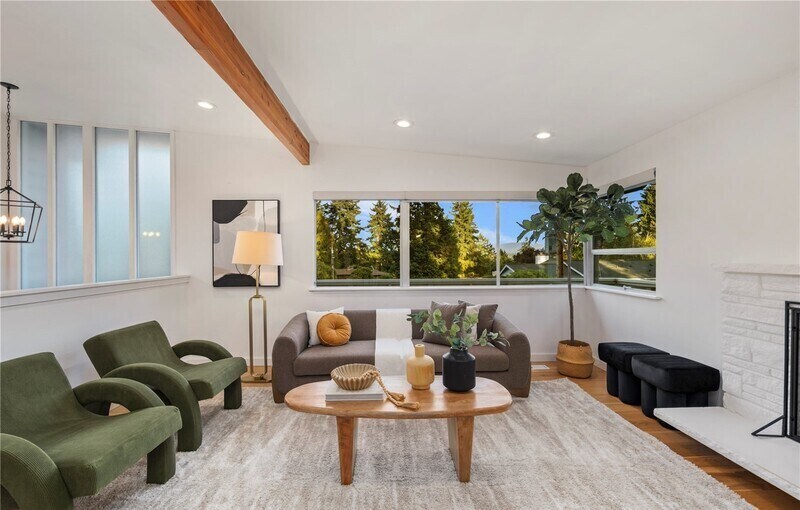 To schedule a showing or apply, visit our website at WINDERMERE-PM. Please note that we only accept showings and applications through our website. Third-party showings or applications are not permitted. Stunning mid-century remodel in sought-after Lochmoor with sweeping Cascade views and an open, light-filled design. The heart of the home is a modern kitchen with quartz counters, stainless appliances, and an induction cooktop, seamlessly blending style and function. Recent upgrades include newer windows, A/C, furnace, PVC roof, garage doors, waterproof engineered hardwoods, plus refreshed baths, electrical, water heater, doors, and hardware. The lower level offers a spacious bonus room with a cozy fireplace. Outside, enjoy a private fenced backyard and deck. All within the top-rated Bellevue School District and close to Crossroads, parks, shops, dining, and major freeways. Terms: $4200 security deposit. 12+ mth lease. No smoking. 1 small pet under 30lbs okay subject to approval and restrictions. Co-signers ok. Renters insurance is required. Minimum credit score: 700+. Verified income ratio: 3:1. For more information, please contact the property manager: Christian Dema. Please do not use any chat features and contact our office or the property manager directly. -------- We do not accept 3rd party applications, please apply on our website: windermere-pm Please review the rental criteria prior to applying to this property if it is located in the city of Seattle on our website: windermere-pm Landlord will NOT accept a comprehensive reusable screening report by a consumer reporting agency.